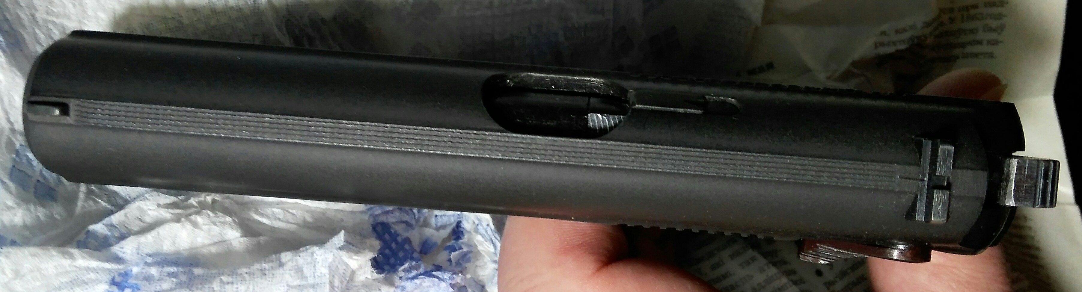Присутствует даже типичный ПМ-овский зазор в верху отверстия затвора от настрела боевого пистолета... :st_ruskiy: