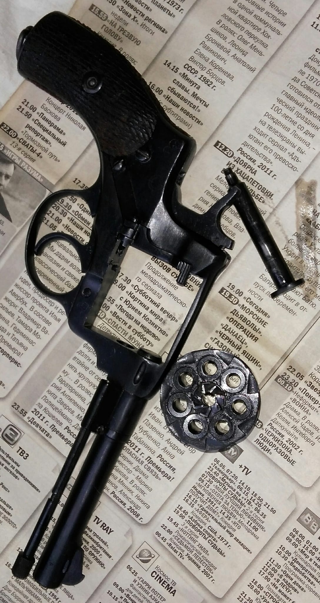 В комплекте имитатор дульного среза,(для умелых рук), страховочный шнур старого типа для Наганов и ТТ, поищу немного ММГ гильз.