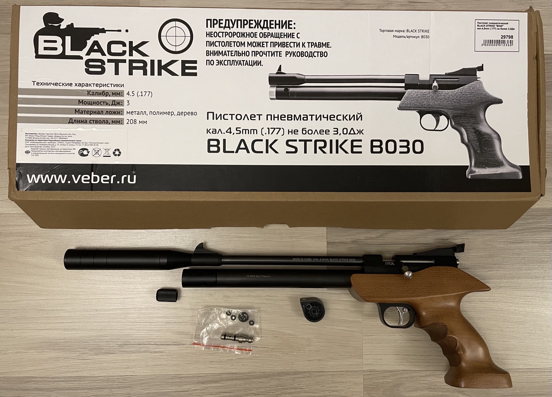 Продам PCP-пистолет BLACK STRIKE B030, калибр 4.5 мм, продается в режиме до 3 Дж. Куплен новым в январе 2025 года, использовался пару раз всего, поэтому и продается, нет времени на увлечение... По качеству сборки и материалов, кучности и стабильности превзошел мои ожидания с учетом своей стоимости. Саундмодератор съемный. Можно с барабаном использовать или подавать по одной пульке. Продаю только комплектом: пистолет вместе с насосом ВД и хронометром, все элементы комплекта в идеальном состоянии, бонусом отдам остатки пулек. Продается в Гродно, но иногда бываю в Минске. За все прошу 700 б.р., торг не уместен.