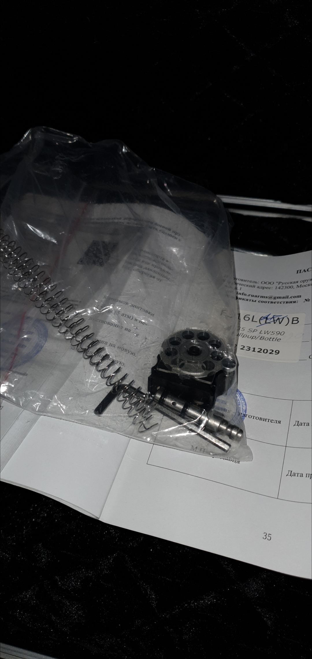 Так же поддерживается кастом объема колбы-ПО ЖЕЛАНИЮ и усмотрению нового владельца может быть установленна как 500 так и 700ml обе комплектом.Далее по комплекту полный заводской Зип-барабан, штуцер.лоток,документы о покупке, сертификат , заводская коробка и комплект пружин -стоковая и "злая"...собственно благодаря ей с небольшой доработке усм( отполированно в зеркало шептало ) с точно выставленным спуском -на пристрелке Винт показал 290хитров/мигом на 4ех гранях свинца...выставлен корридор в 5метров на плато с значением 9-11 раз....после чего был благополучно возвращен к заводской настройке и установленным законом 3ем Джов-лям))в таком собственно состоянии и реализуется...для коллег ищущих большего совершенства ТТХ -отмечу что при на@тройке и отстреле на "злой" пружине она не была поджата даже на треть и свободно болталась в канале ударника...