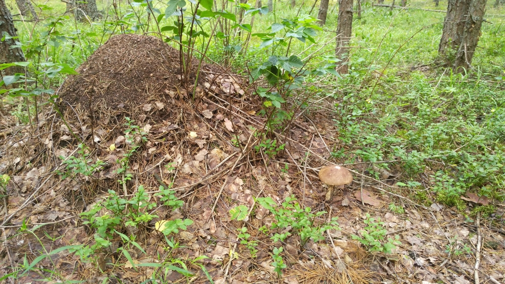 Километры наматывались, а на пути только червивые и полное отсутствие нормальных. Жена уже плотно села в ягоды, и я не был против, пусть малявка черники поест, для зрения полезно. Обратил внимание что тропами ходят муравьи, истенно лесные, здоровые как кони и тянут все подряд. Чуть позже я скомандовал, увидешь муравейник, смотри вокруг грибы, это единственный шанс найти не червивый. И я не ошибся обхаживая муравейники, которых там по неизвестной причине дофигища, нашел красивую бабку, и даже не удержался чтобы не запечатлеть...