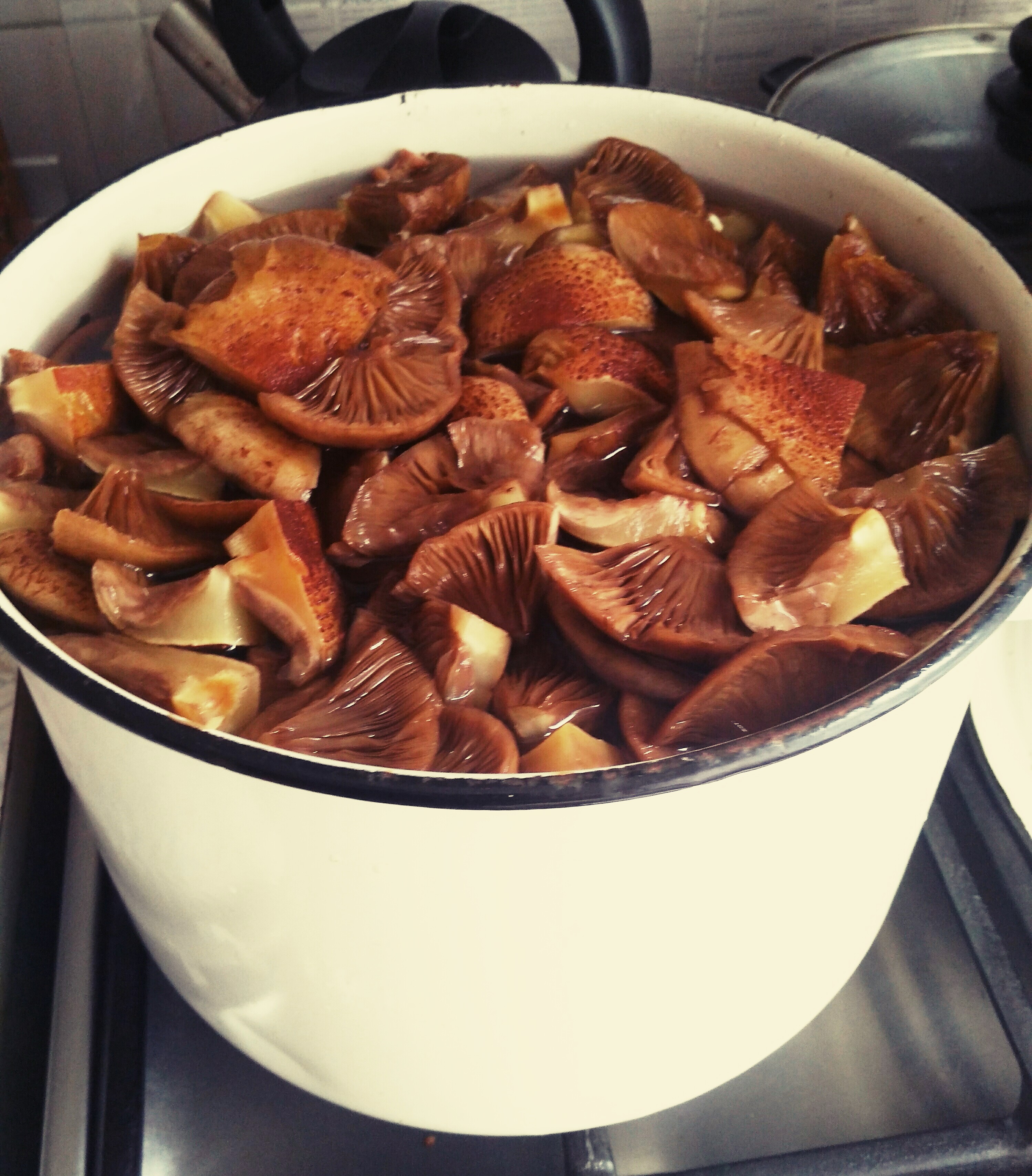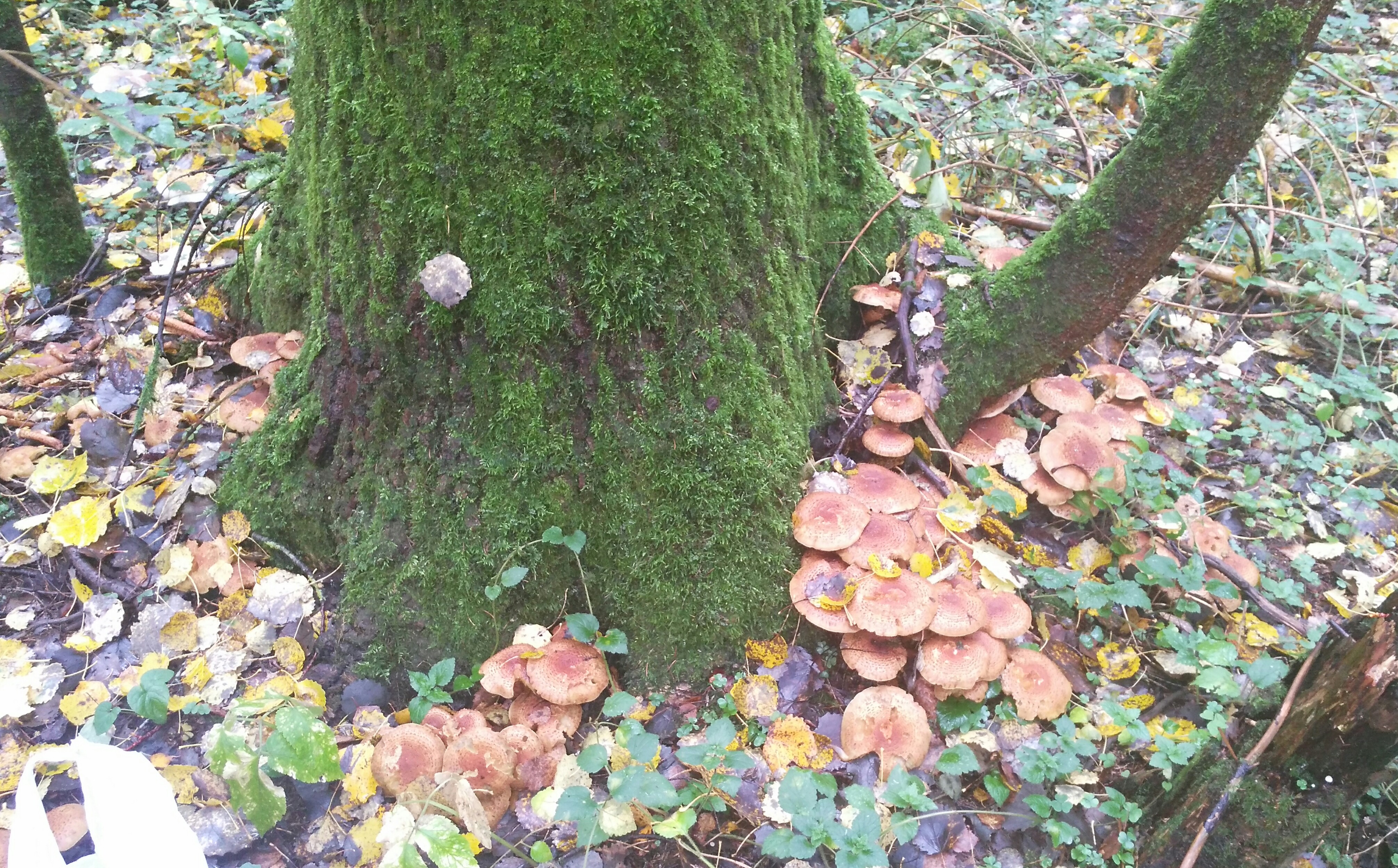 Ну, ликбез провел, можно и про грибы. Попер я в сторону Гродно, 20-30 км от дома. Заехал за Раков, раньше один раз был в этом лесу, но столкнулся в нем с тем, что невозможно было пройти по лесу из-за воды глубиной от щиколотки до колена. Че я только не думал, и ключи бьют, и трубу какую прорвало, и вода с горок после дождей стекает в низины. Короче походить я не смогу по лесу. Сел в машину и отъехал около пяти километров. Снова с удивлением заметил, что все в воде... Потом, встретил странную местную жительницу, которая показав мне весьма странные поганки сказала: "Ой, столько белых в лесу, сколько белых"! А потом добавила: "Ислочь весной так не разливалась, как этой осенью!" Я тут и прифигел. Короче и тут у меня на грибы не помнишь и я снова переехал. Грибов нет, но я должен вернуться не с пустыми руками. И тут мне попался огромный трутовик на берёзе. С учётом того, что я когда-то получил профессию краснодеревщика, я просто не смог мимо него пройти и положил его в пакет. Не успел я пройти и увидел своё дерево, которое понизу и вокруг было усыпано опятами! :-) "Обломилась!" - сказал я в сердцах своим домашним! Я нарезал целый портновский пакет одних шляпок и побрел домой. Уже вечером были жаренные опята! Прогулка по лесу удалась. Жаль, что такие прогулки у меня бывают такие редкие из-за работы!