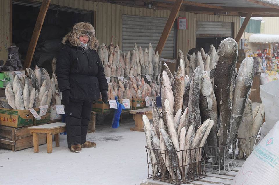 Леня Костюков поделился свежей фоткой из города Якутск. Местный крестьянский рынок. Эх хорошая у них рыбка))