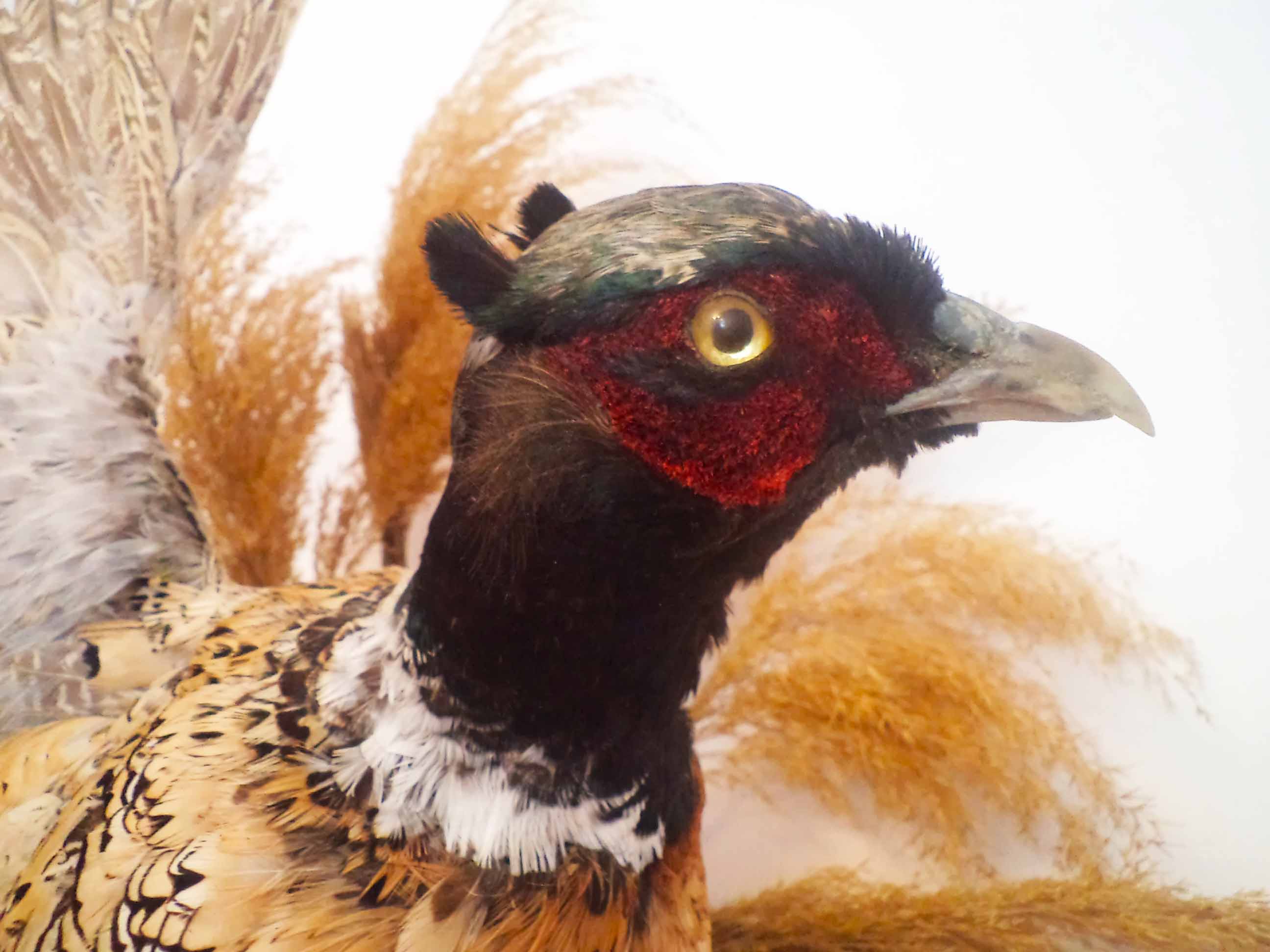 ...для глаз использую пуговицы, подрезал на наждаке и надфильке, получились не плохие заготовки в виде полусферы - останется только на основании выполнить "радужку", углубить зрачок и закрасить его маркером...вот так выглядят уже установленные глаза фазана - один похоже основательный недостаток - радужка вышла желтого цвета ...а надо темно-оранжевый...