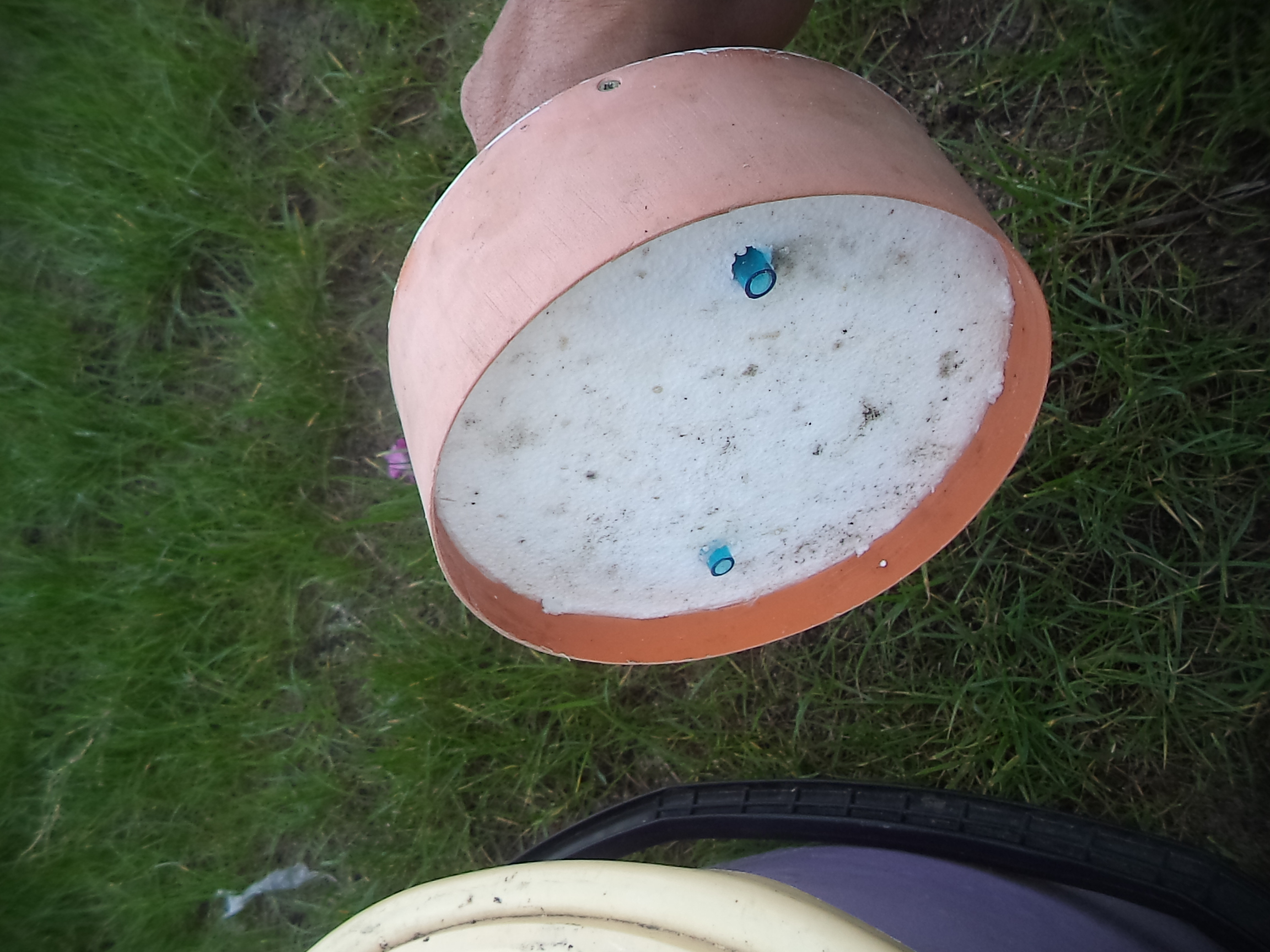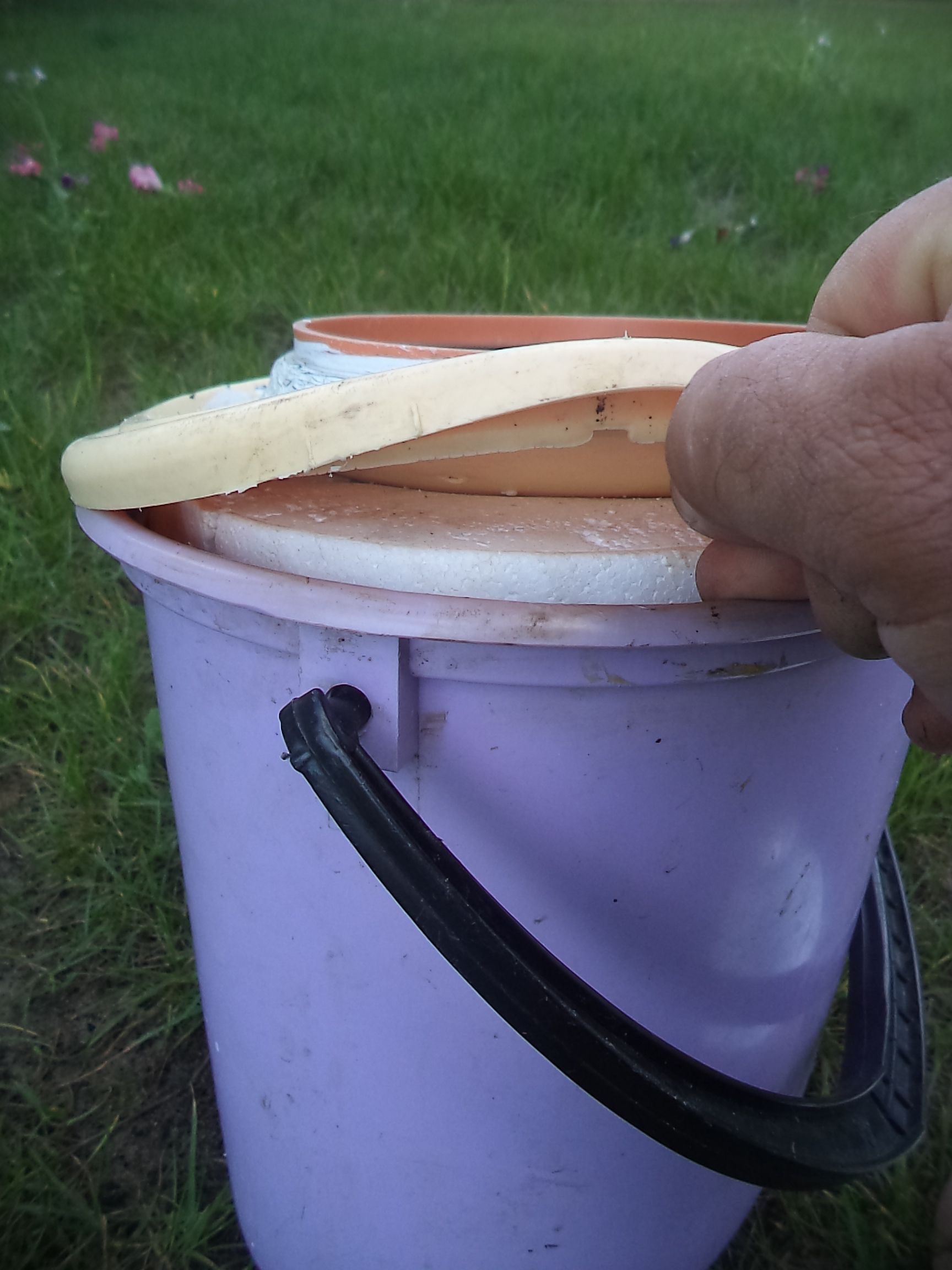 Предлагаю вашему вниманию весьма полезный аксессуар для рыбалки. Я увлекаюсь ловлей хищника с помощью жерлиц на живца. Так вот, в зимний период, в сильный мороз весьма проблематично сохранить живца живым во время рыбалки (ведро внутри сильно обмерзает). Обойдя множество рыболовных магазинов в Беларуси и в России, когда бывал там, я так и не встретил подходящего термоса для живца. Поэтому решил сделать его сам. Взял 2 ведра: одно на 5 л., другое на 10л. Дно, стенки и "потолок" выложил кусочками полистирола, толщиной 2,5 см, сильно прижимая друг к другу. Использовать монтажную пену, как советуют многие, бессмысленно, так как для затвердевания пены ей необходим контакт с воздухом, а так она просто превратиться в желеобразную массу. Для удобства открывания сделал входное отверстие из куска сантехнической трубы, диаметром 150 мм, оставшейся после строительства дома. Верх крышки сделал из фанеры 10 мм, а снизу приклеил кружок из полистирола. Для дыхания рыбок в крышке просверлил 2 отверстия и вставил 2 силиконовые трубки. Крышку 5-ти литрового ведра, а также щель вокруг сантехнической трубы запаял обычным паяльником и для надёжности обмазал полиуретановым герметиком. Крышку 10-ти литрового ведра оставил без пайки, чтобы можно было приоткрыть для просушки конденсата.