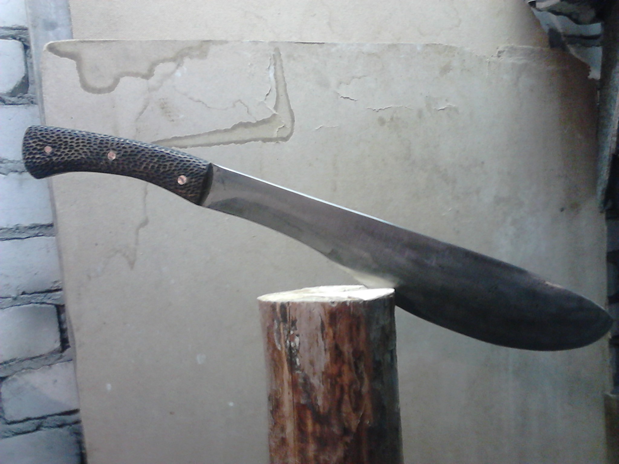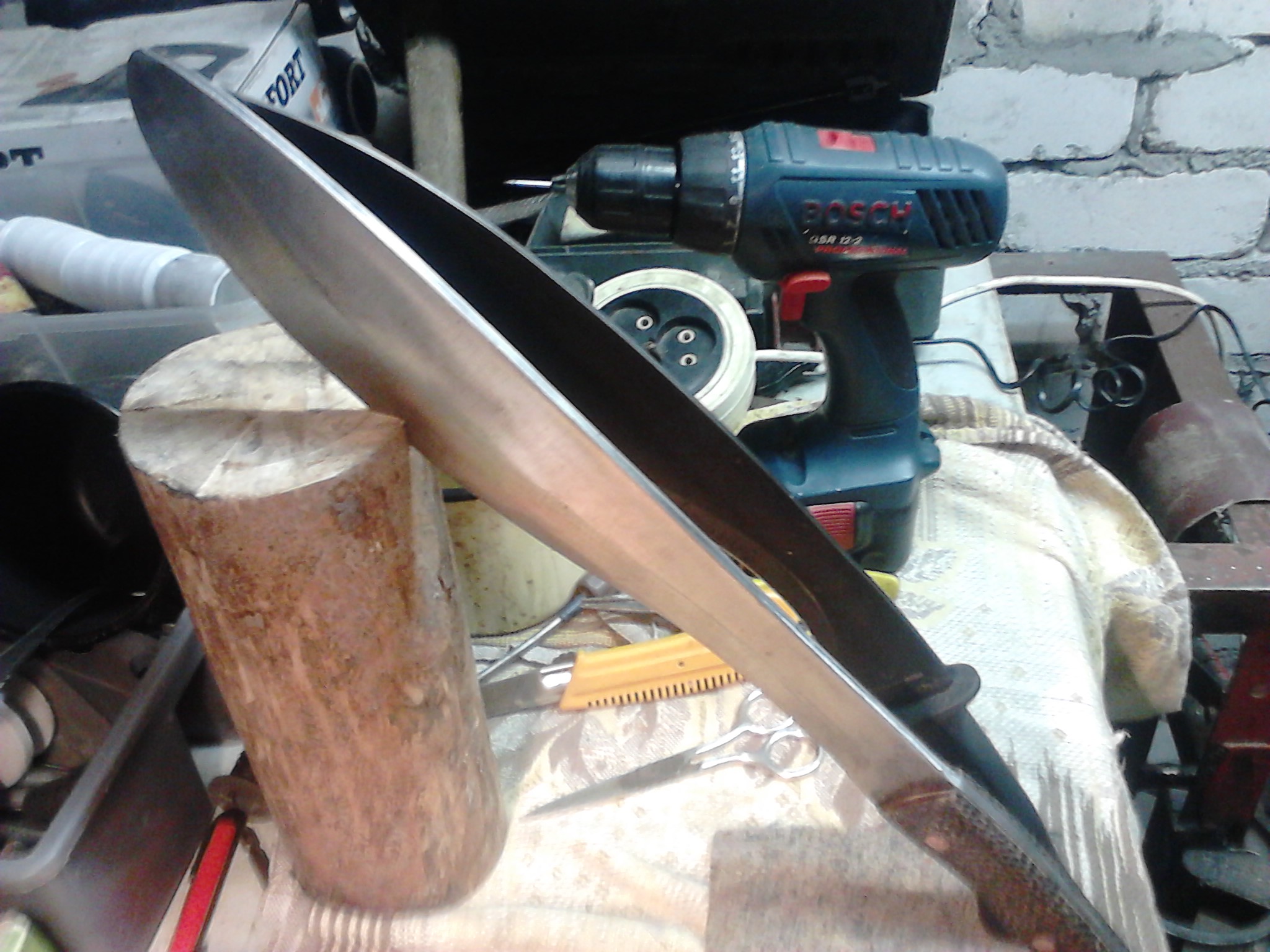 Вдоволь наигравшись покупным "игрушечным" мачете, который покупался под определенное дело - рубить хворост для подвешивания жерлиц, и начав на своем "мессершмите" упарываться в глуховатые бездорожные леса, пришел к выводу что нужно более "тяжелое" вооружение. Способное разрубать с удара - двух ветки толщиной в 8-10 см. а то и быстро одолевать колья потолще...