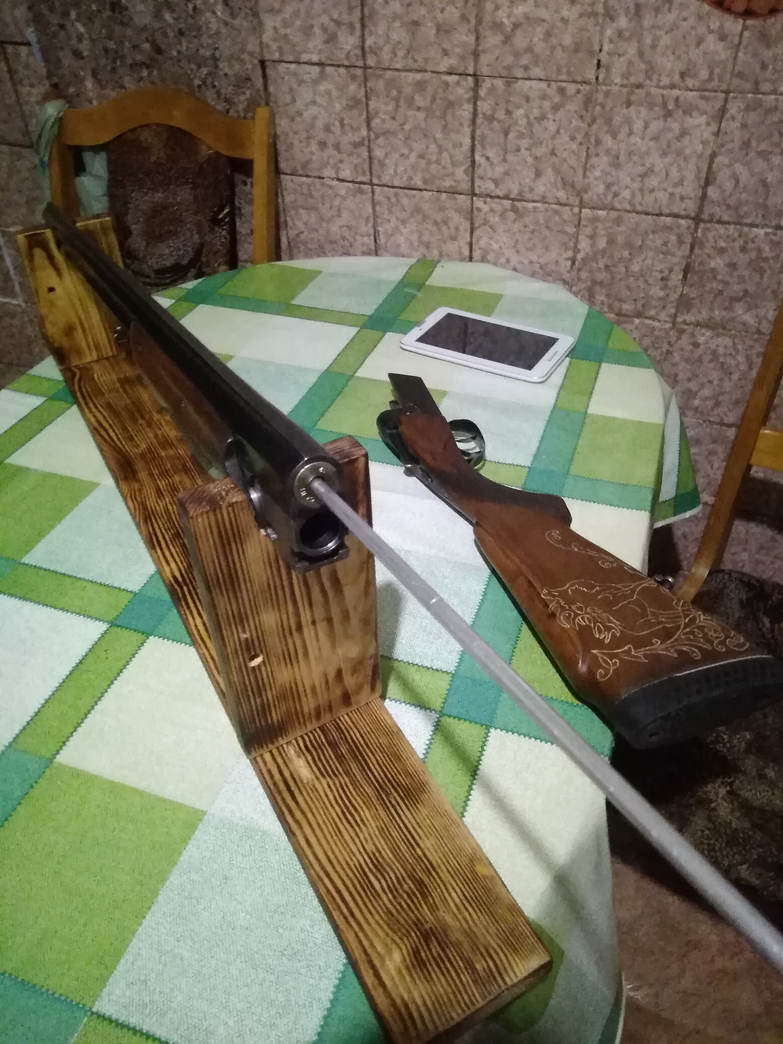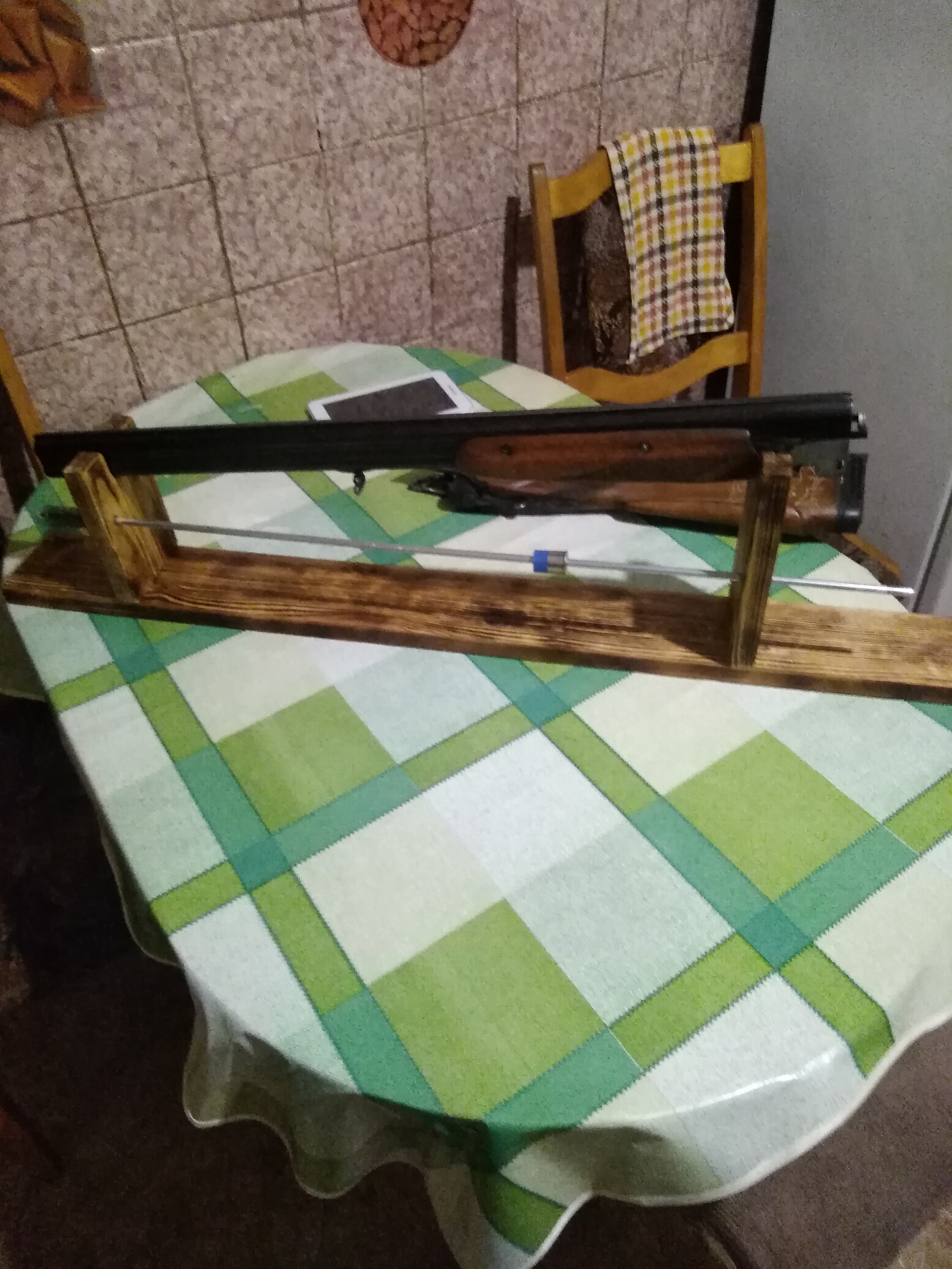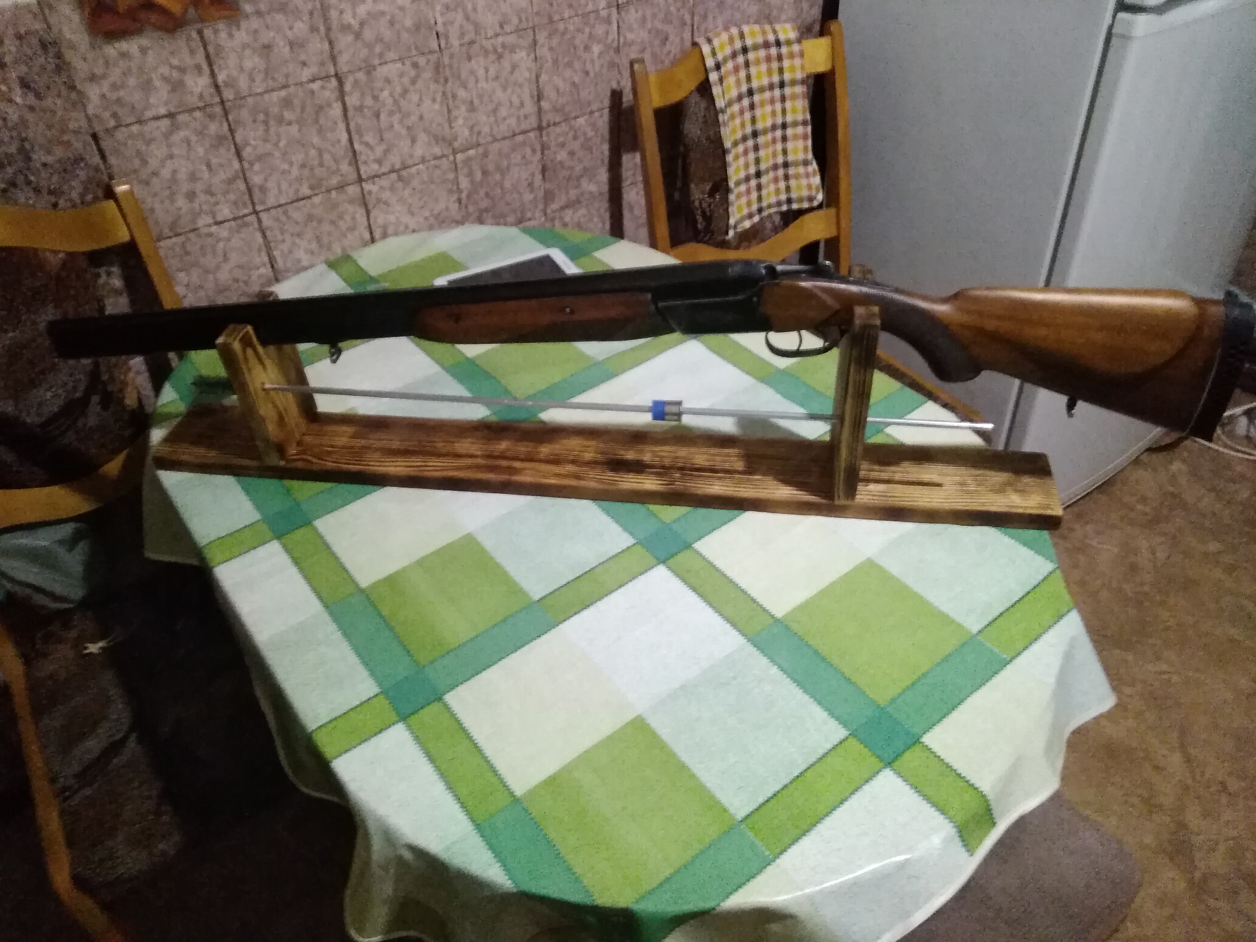 Дорогие охотники чтобы сэкономить ваши силы рекомендую вам изготовить простую и удобную подставку для чистки оружия. У меня со старого шомпола слетела ручка чтобы не выбрасывать я решил использовать его вместе с шуруповертом, а для того чтобы было удобно чистить ружье шуруповертом я и смастерил простую подставку. Алюминиевый шомпол при вращении шуруповертом терся по патроннику, чтобы этого избежать я взял старую пластмассовую гильзу, и обрезал почти до юбки, затем в капсульном гнезде рассверлил отверстие на 0,4 мм больше чем сам шомпол. Удобная получилась подставка. Время чистки значительно уменьшилось результатом доволен.