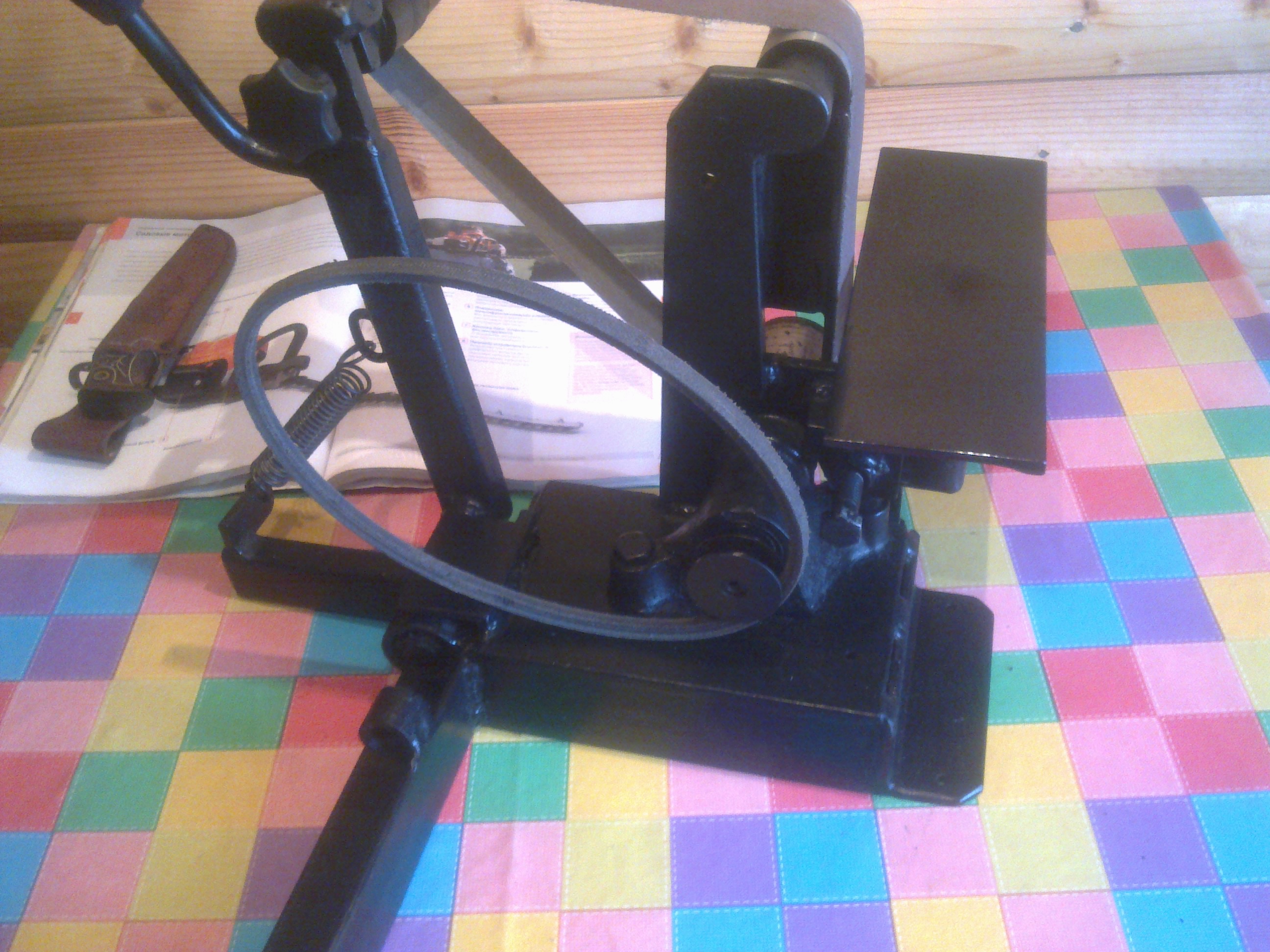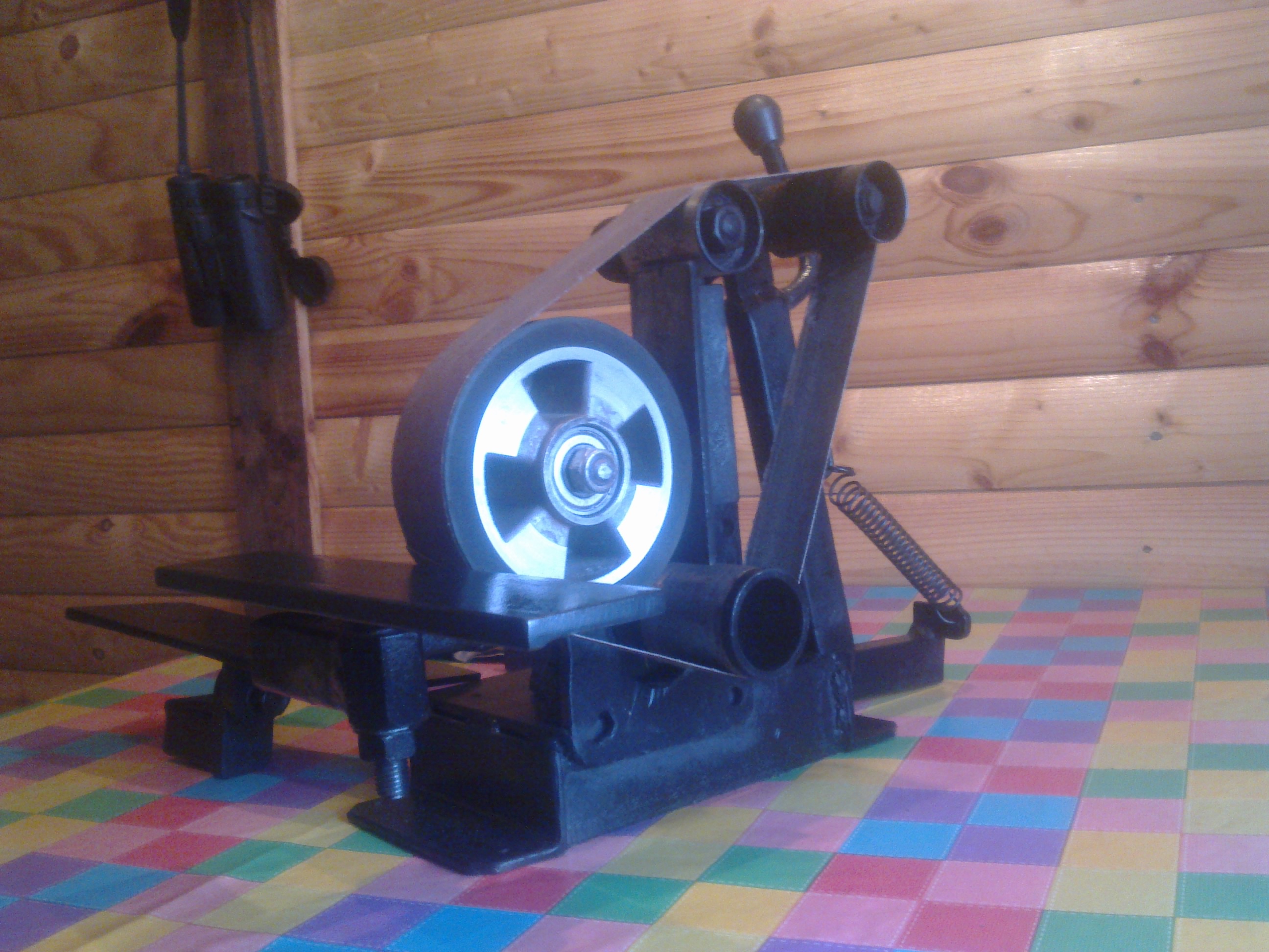 Продам самодельный гриндерок вот под такую ленту Cсылка скрыта. Для просмотра необходима регистрация на форуме или войдите на форум. :-): начинающему ножеделу для любительских целей думаю будет в самый раз. Привод ведущего ролика ременный, я использовал движок от своего компрессора, шкив на эл. двигатель в комплекте под стандартное посадочное. Продаётся без двигателя.