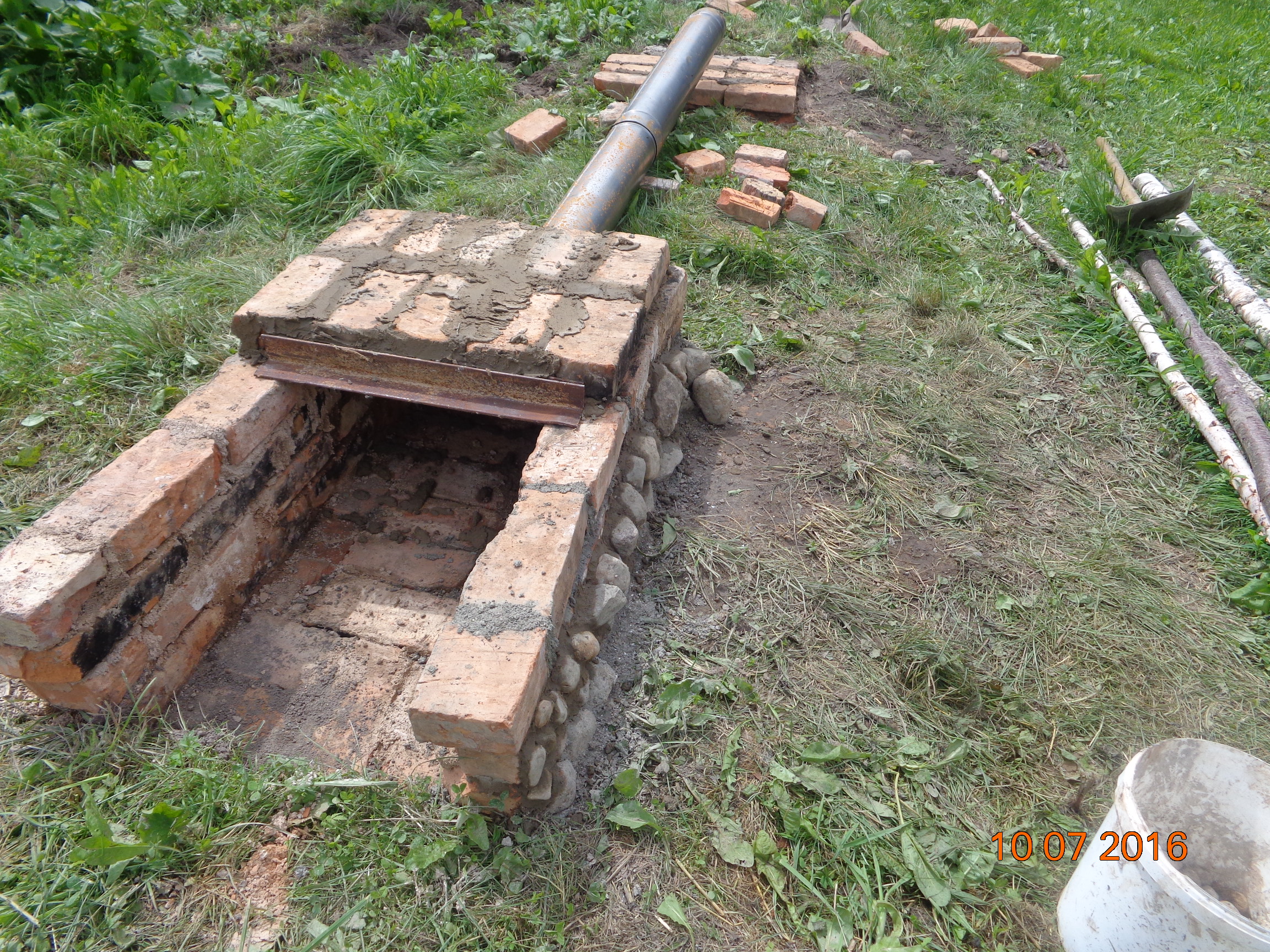 ...,строго не судите,делалось впервые,как уже говорилось,кирпич использовался б.у...,в дальнейшем его обложим камушками,что придаст кое-какой красоты