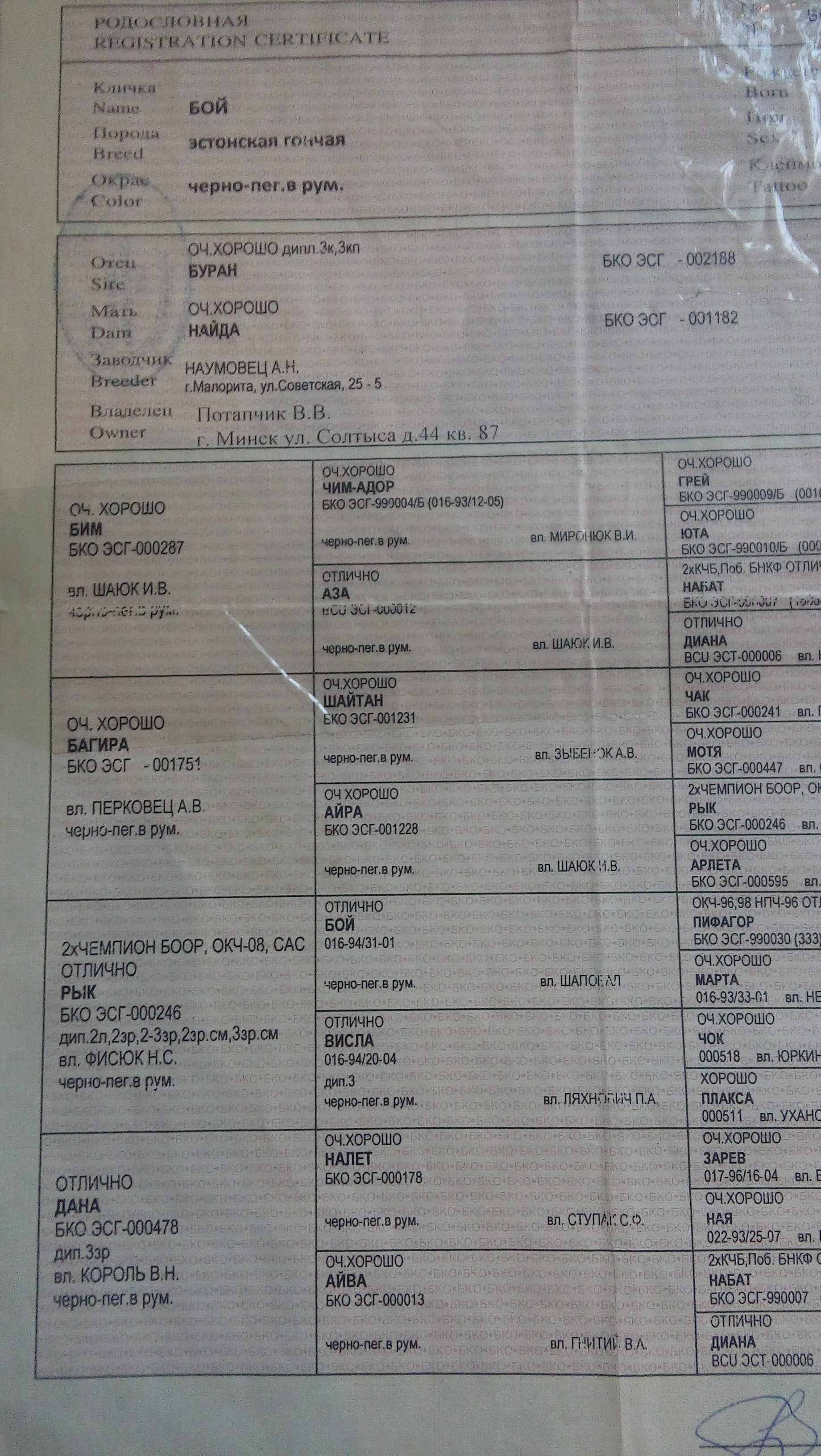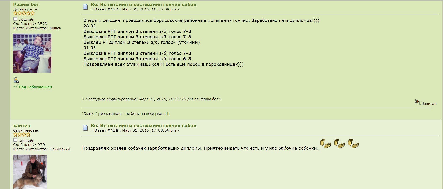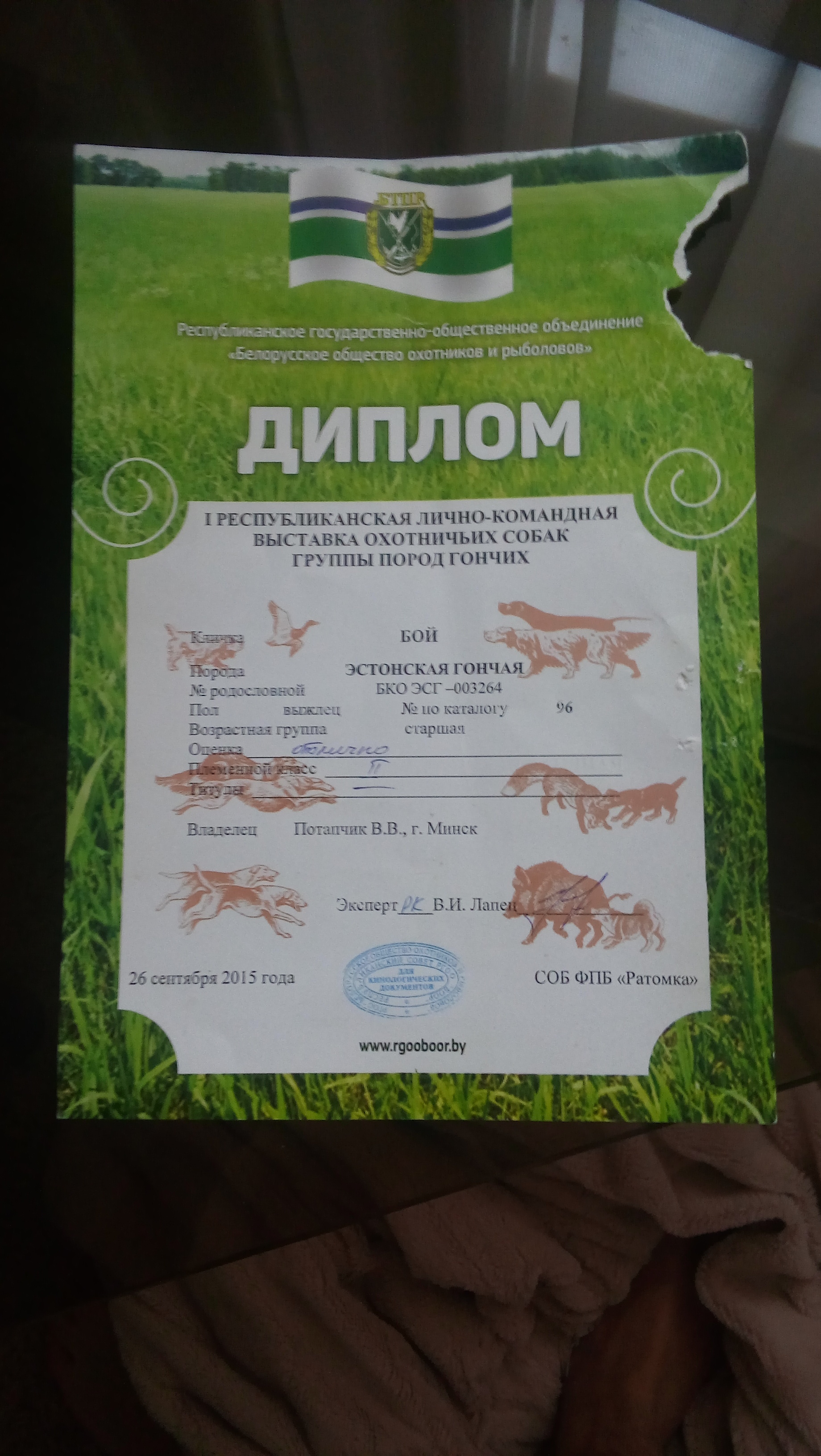 Ваш выжлец получил диплом по русаку 28.02.2015 в Минской области.