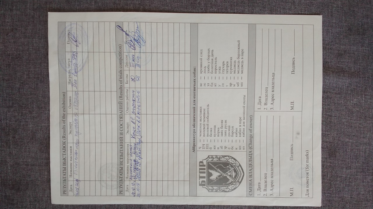 В связи с указанными качествами удостоен диплома 3 ст.по кровяному следу и 3 ст по лисе.