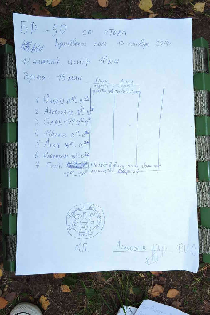 Потом был БР по мишенькам - центр 10мм на 50м
