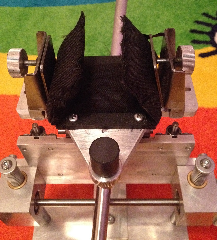 Верхняя часть упора или “голова” поворотная (360˚) положение можно зафиксировать рычагом с эксцентриком. Для любителей пострелять по 18 евро за выстрел предусмотрена возможность намертво зафиксировать голову винтами.Цевье винтовки фиксируется поджимом наклонных пластин. Расстояние между платинами, можно изменить, пережав винты в отфрезерованных пазах. Стоит заметить, что регулировки достаточно для установки как широкого трапециевидного ложа М2 БР, так и относительно узкого прямоугольного ложа AA MPR FT без смены мешка. Для обеспечения единообразия укладки винтовки в упор на “голове” предусмотрен ограничитель с регулировкой по высоте и контрящей гайкой.