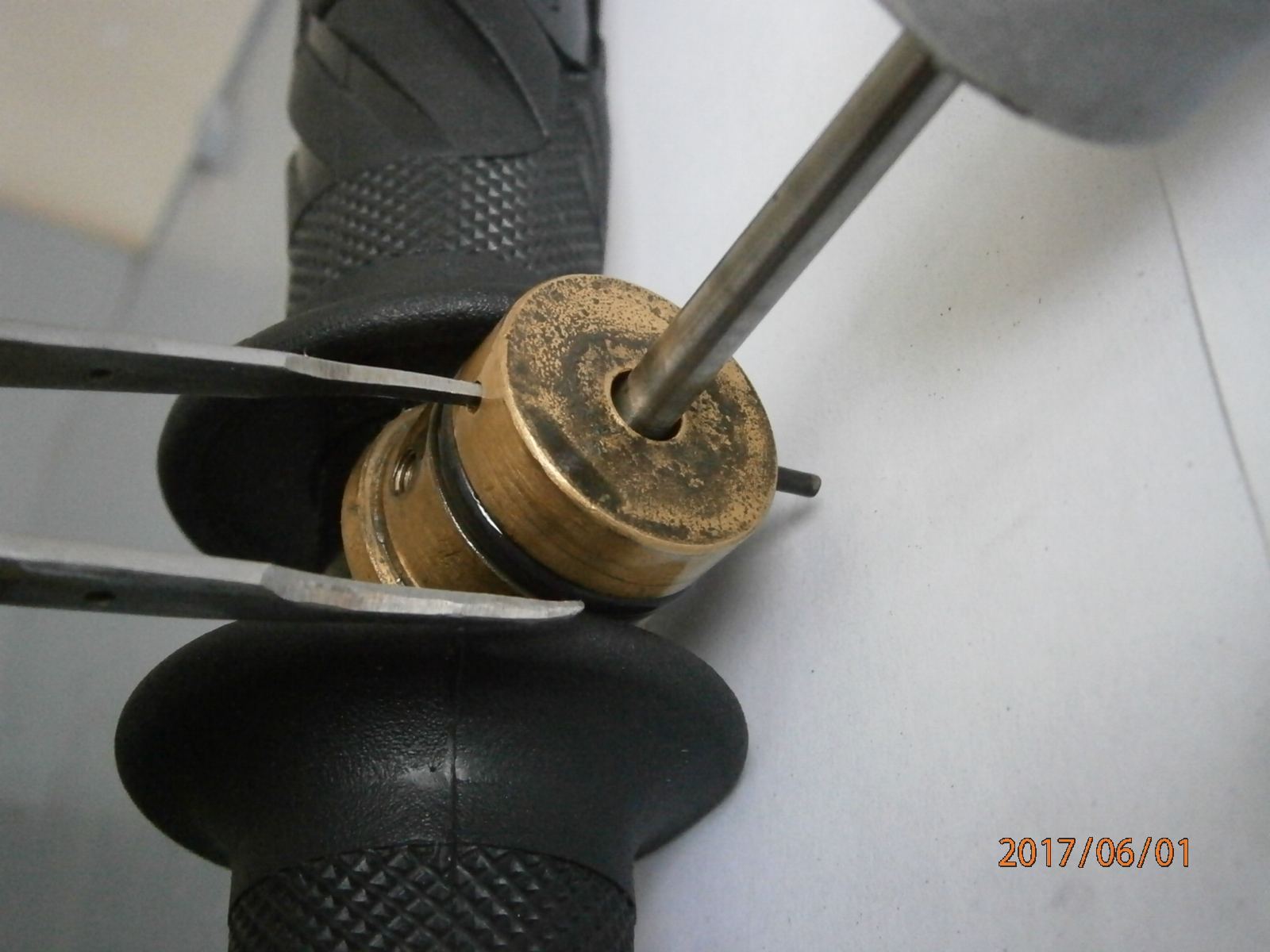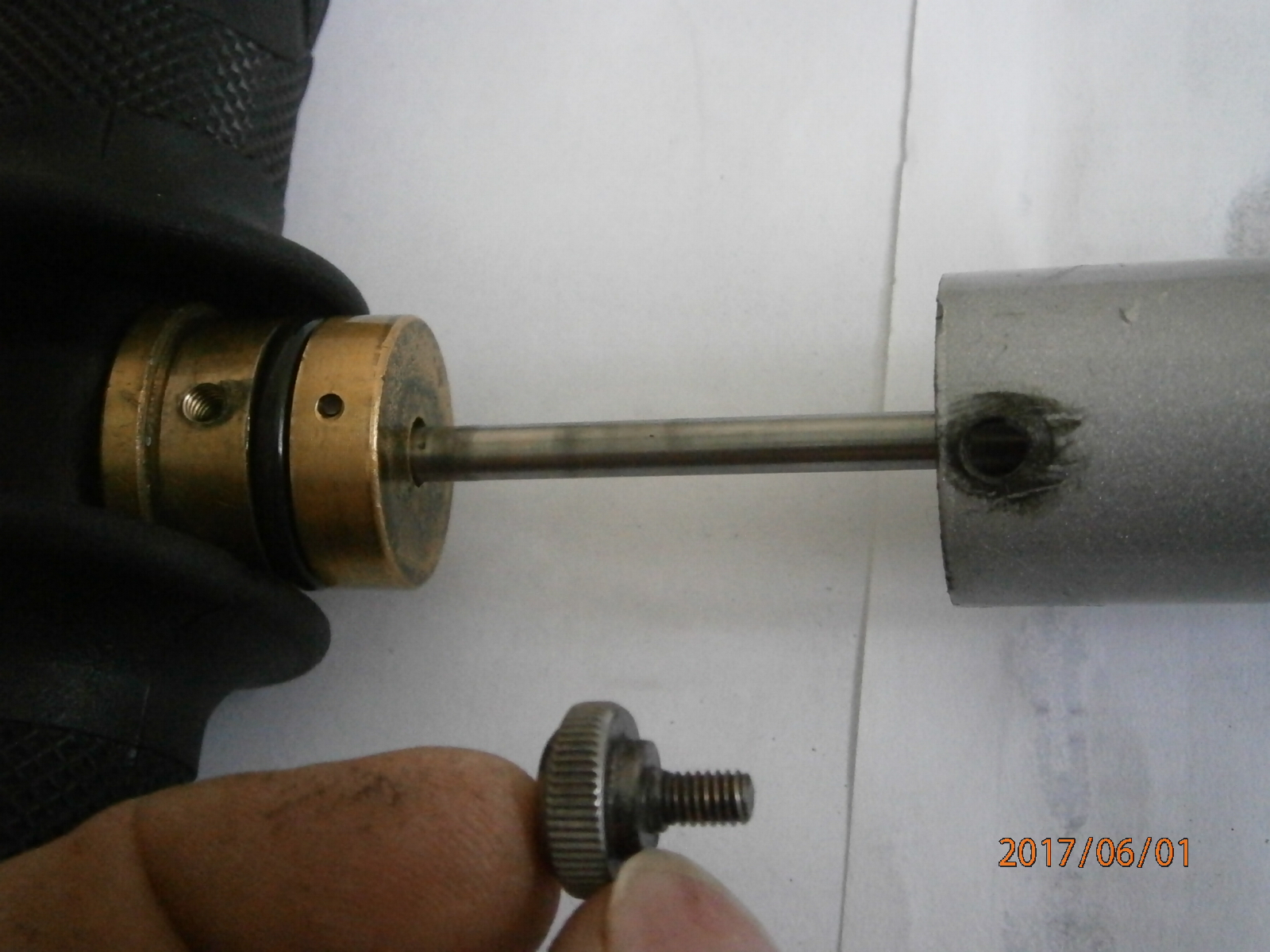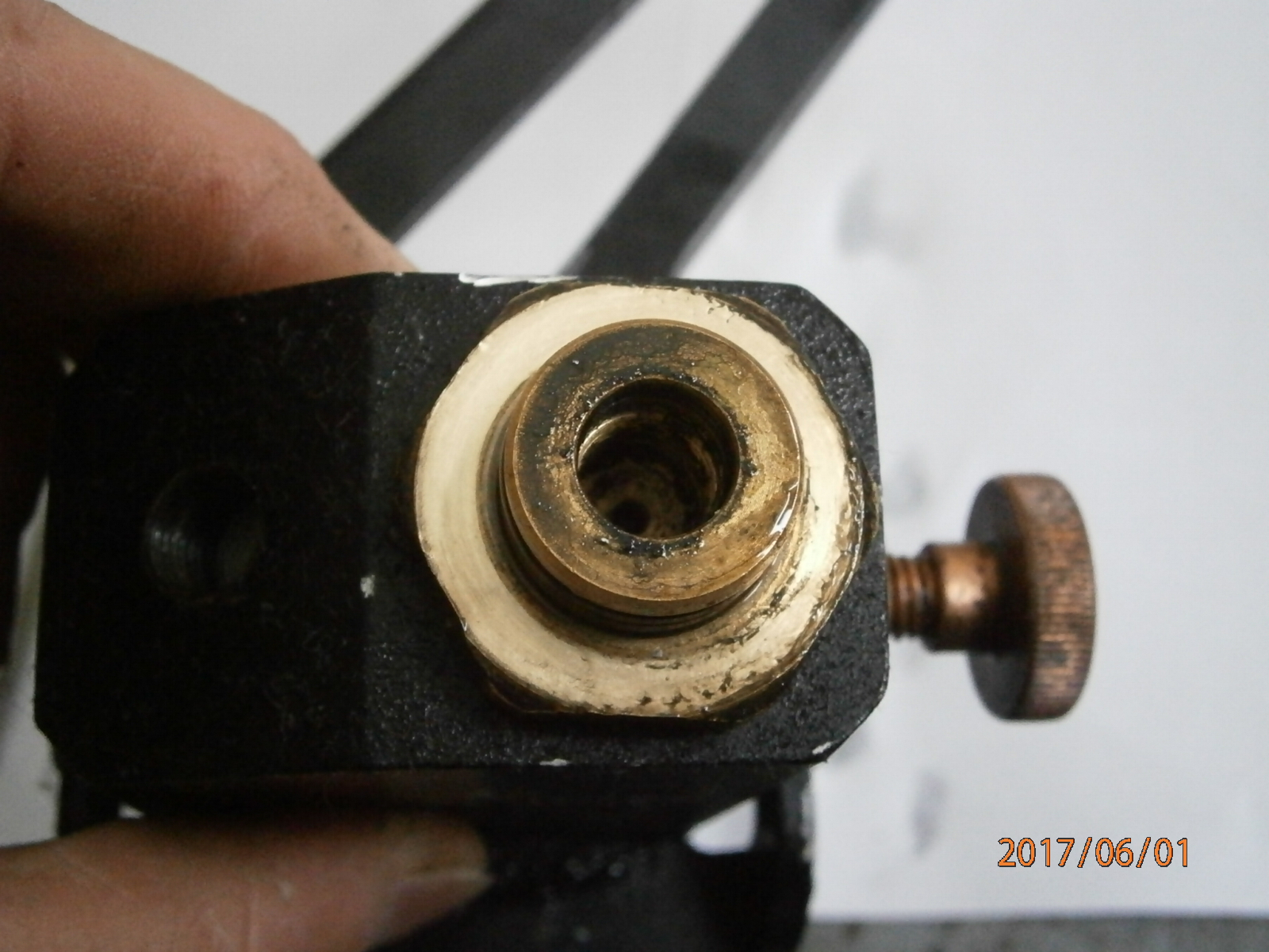 так прикорел к корпусу, что выдрать его без деформации невозможно. Хитрость его заключена в диаметральном расположении фрезерованных пазов на наружных стенках. один паз соединяет винт стравливания с дном шахты, а по другому -подаётся ВД в шланг из верней части шахты.