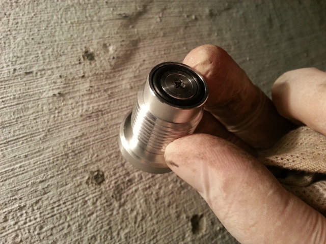 Кнопочка разбирается снятием одного стопорного колечка и проста как 2 копейки - даже в изготовлении проще чем болтик с резьбой. :-)