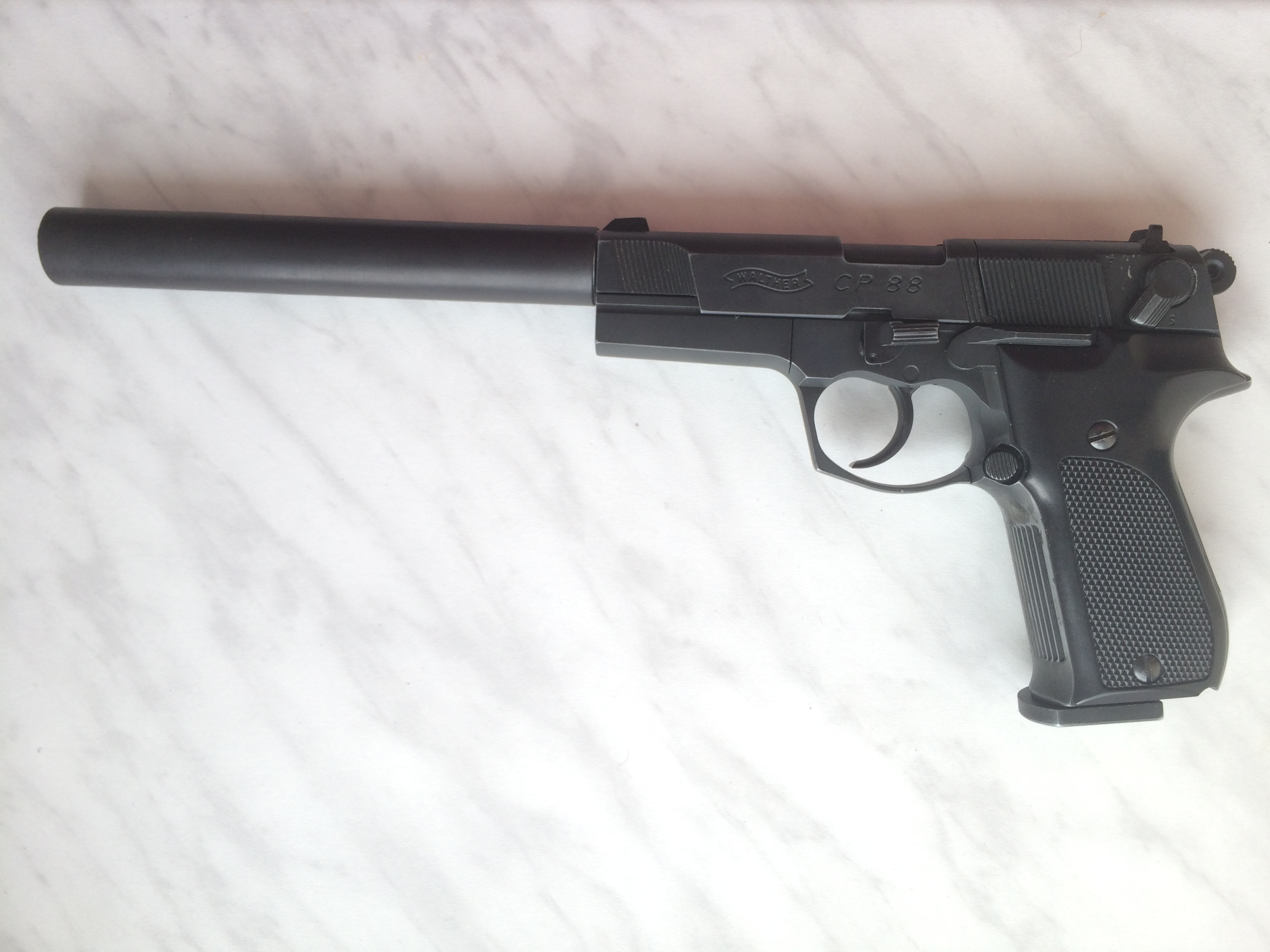 Не заметил, на ствол смотрел. Если без синхронизатора, то зачем оно надо? Просто два поршня рычагом в разные стороны растолкать, дело немудреное... Может там и есть синхронизатор, а массы поршней разные. На мысль о наличии синхронизатора наводит то, что компрессор в передней части длиннее, значит пружина одна.