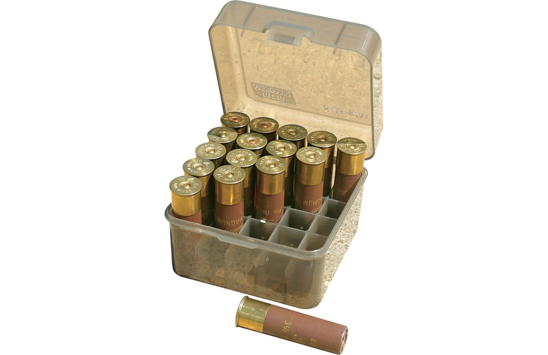Вот такие вот очень удобные коробочки. Цвет - как на фото. Для патронов 20, 16 и 12 калибра (переходник в комплекте). Патроны в ней не болтаются, фиксируются хорошо (во всяком случае, 12-го калибра). Максимальная длина гильзы - 76мм. Цена - 150 000 рублей.