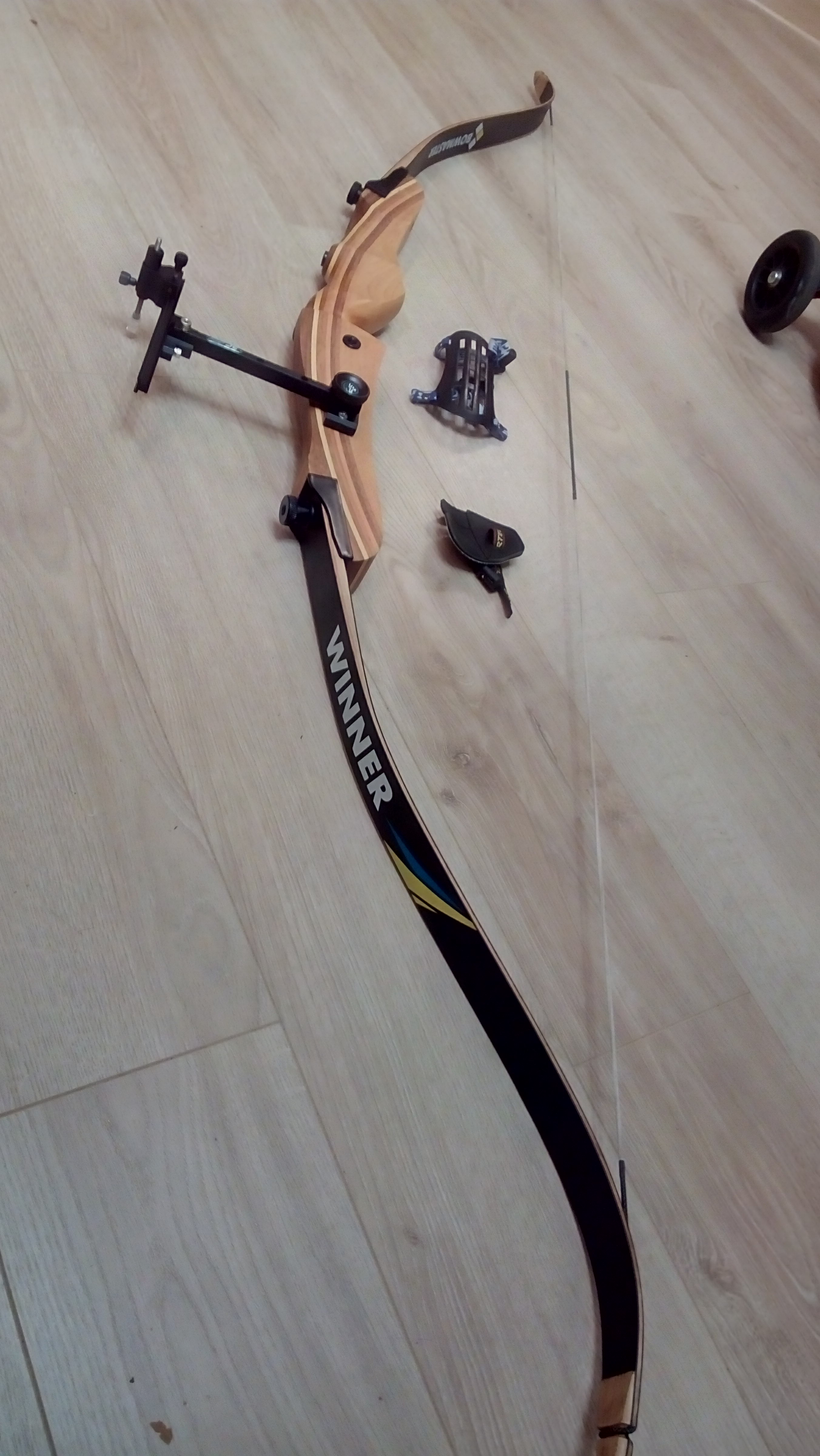Лук классический BowMaster Winner RH 66" 18# +прицел Axiom Short+ стрела + крага + напальчник = 290 br.
