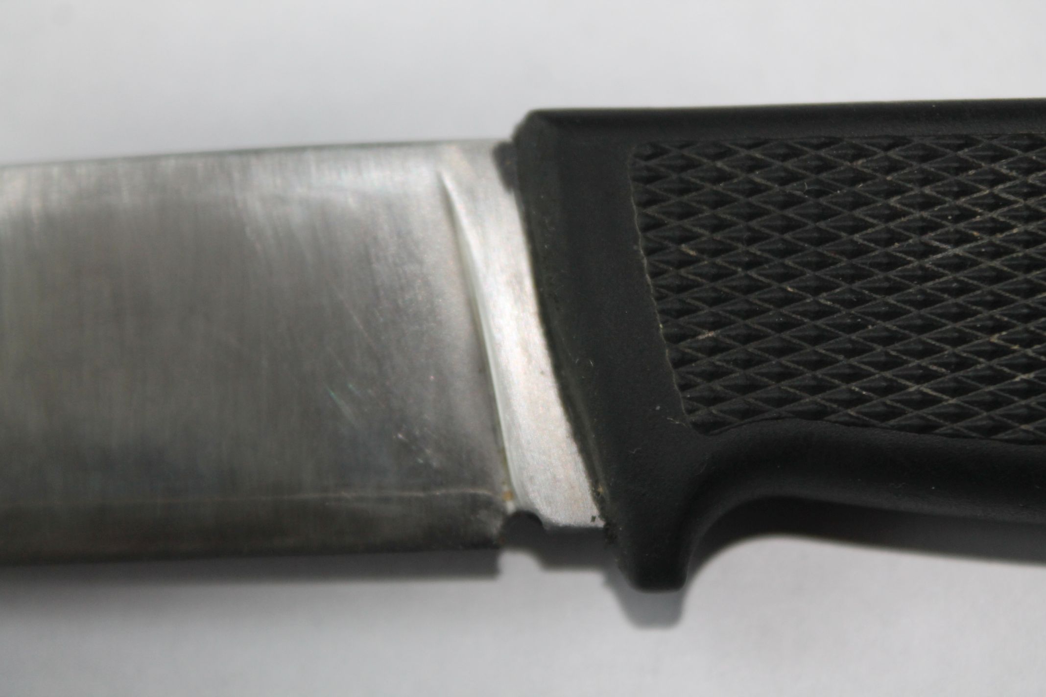 в минусе, клеймо уходит в нети (мы же точим всю поверхность клинка, весь спуск). равно как и чорное тактицкое покрытие (кстати следы коего еще можно обнаружить на продаваемом ноже),