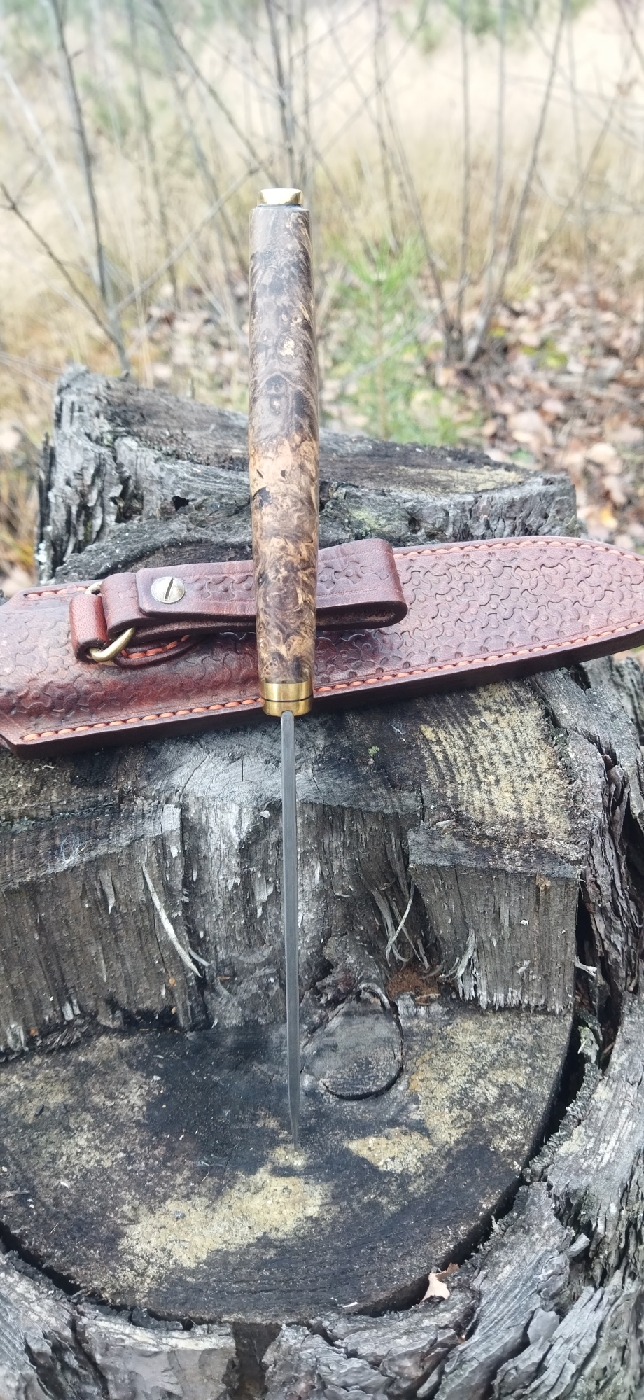 Рукоять - стабилизированый кап клёна, латунь. Сквозной монтаж. Длина 125 мм.