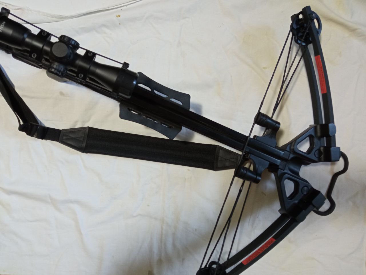 В хорошей комплектации - прицел 4х32, 4 карбоновые стрелы, кивер, натяжитель, ремень для переноски.