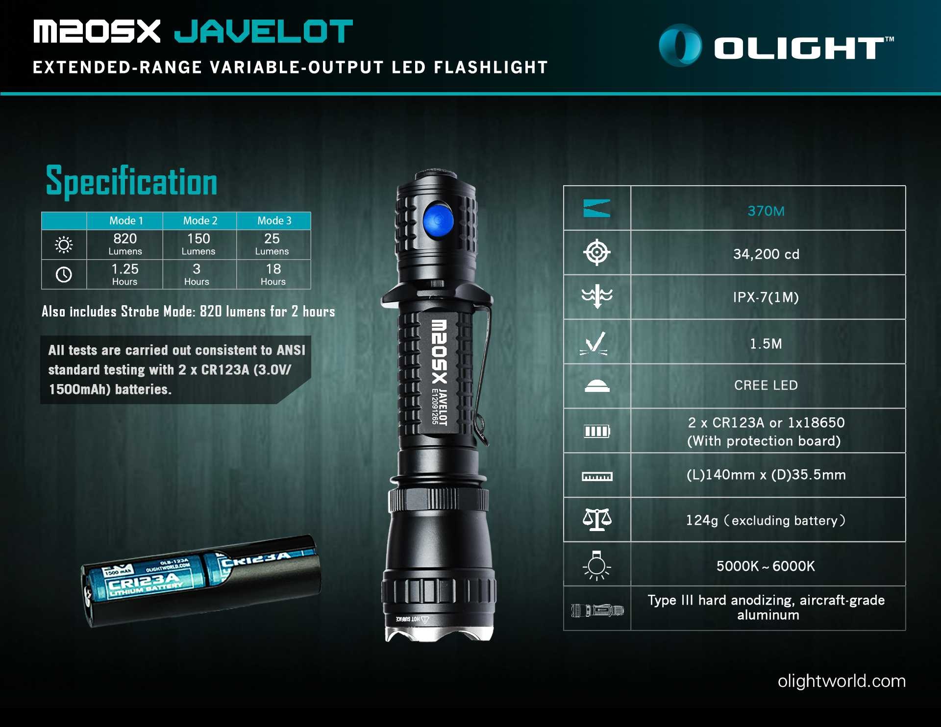 У нас на подходе новая версия фонаря Olight M20SX Javelot 820lm , дальностью до 370 метров. Модель фонаря Olight M20 производиться уже 7 лет и считается самой популярной моделью фонарей Olight. В новой версии фонаря Olight M20SX Javelot изменения претерпел светодиод, со светодиода убрали оптическую линзу что избавила фонарь от боковой засветки. У фонаря появился более мощный светодиод и сфокусированный луч который бьёт на дальность. Как обычно фонарь можно использовать под водой и над водой. Цену озвучу после того как заберу фонари с таможни.