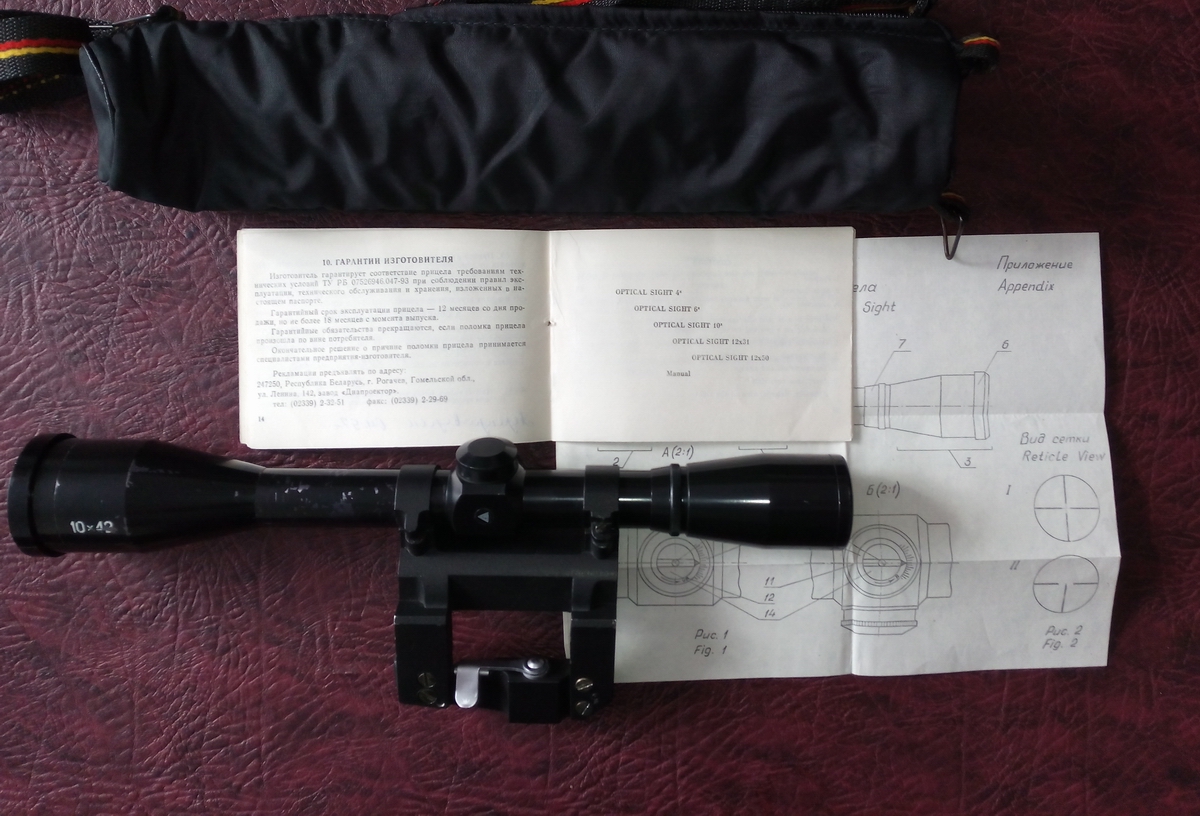 Добрый день. Какая подсветка? Вся сетка? Не слепит ночью? Как вариант: 10*42, "Диапроектор" г. Рогачев. Есть крон, переколхоженый-в подарок. Чехол, паспорт. Корпус поцарапаный. Стоял на Сайге-12. Слишком мощный. +целик упирается в прицел-снял-одел-царапины. Лежит который год без дела. Территориально-Могилев. V 651-45-27, МТС 543-97-11.