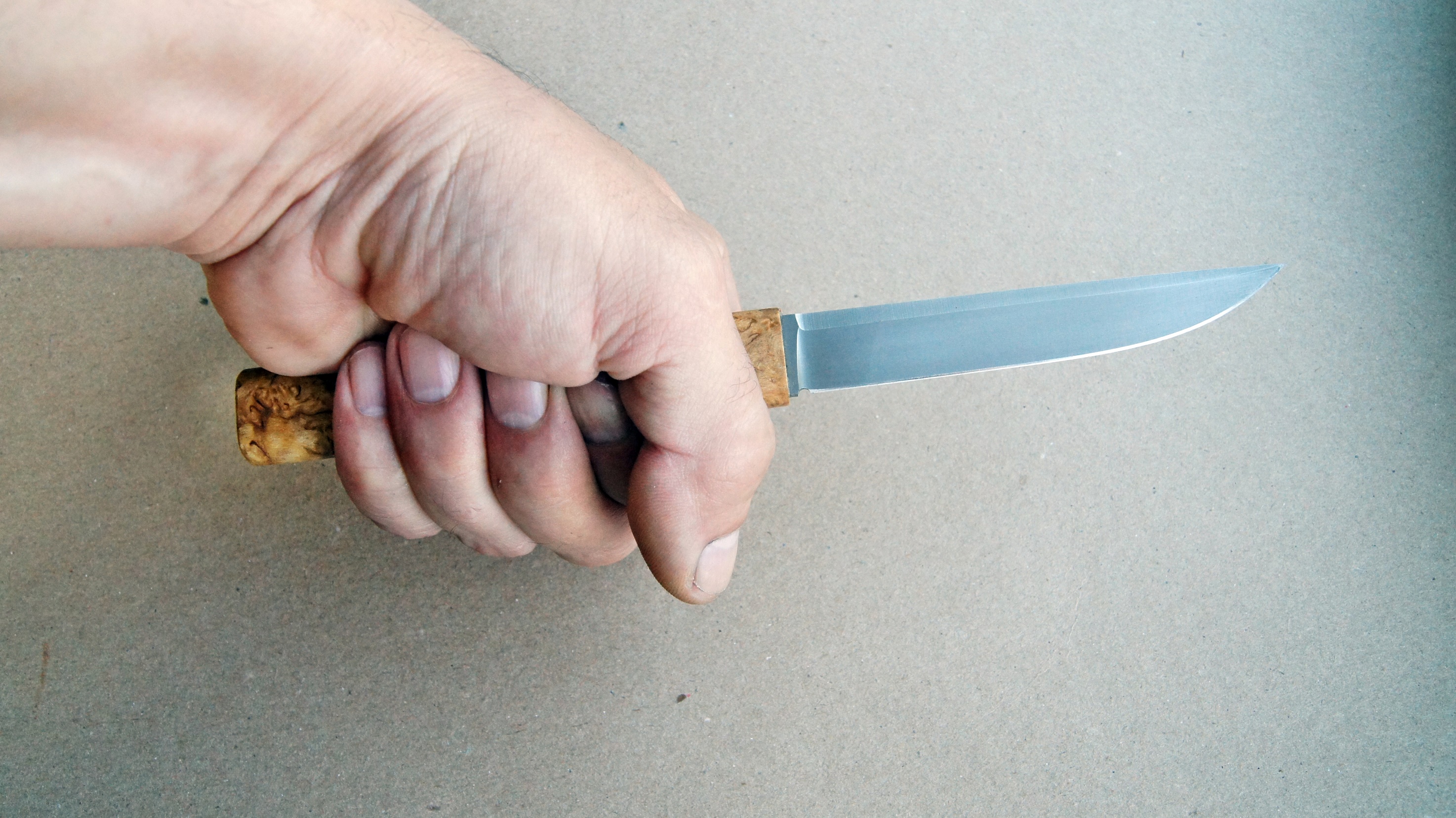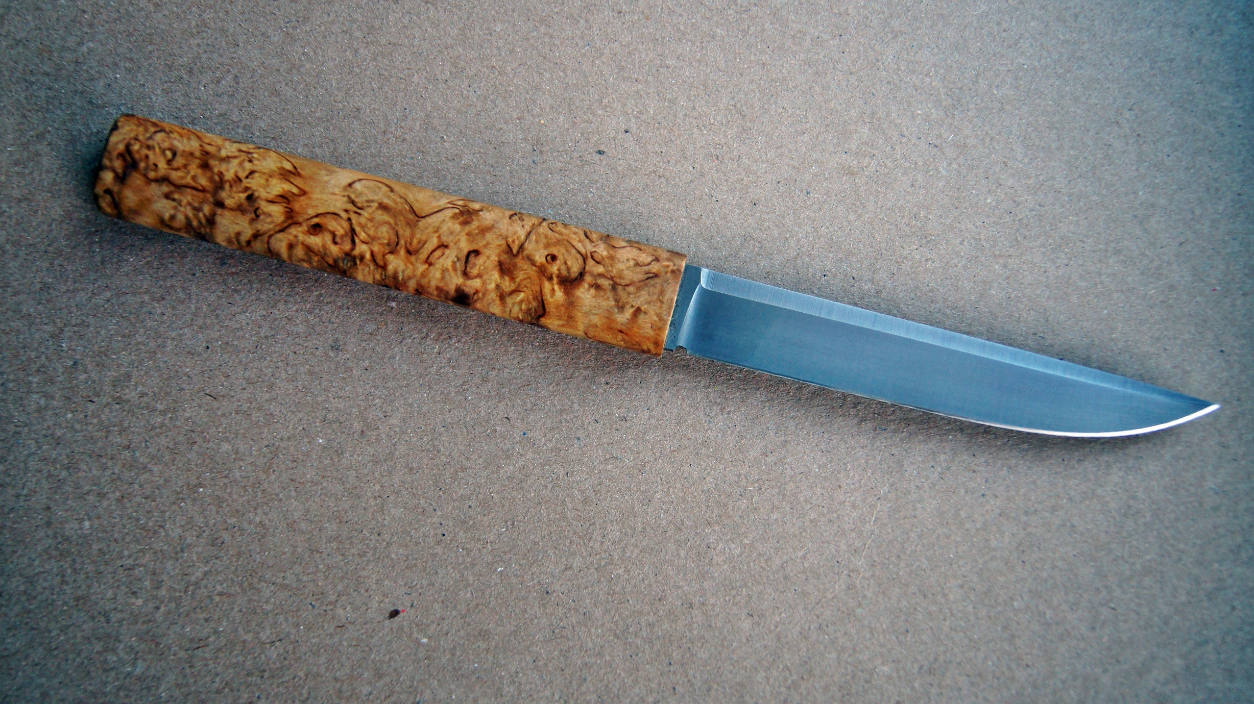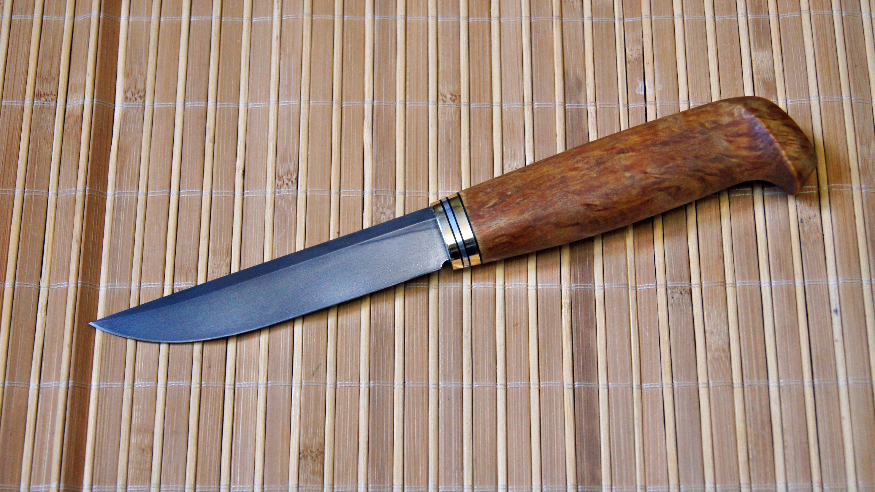 Рукоять латунь,Д16Т,фибра,карельская берёза,пропитана,воду в принципе не берёт.