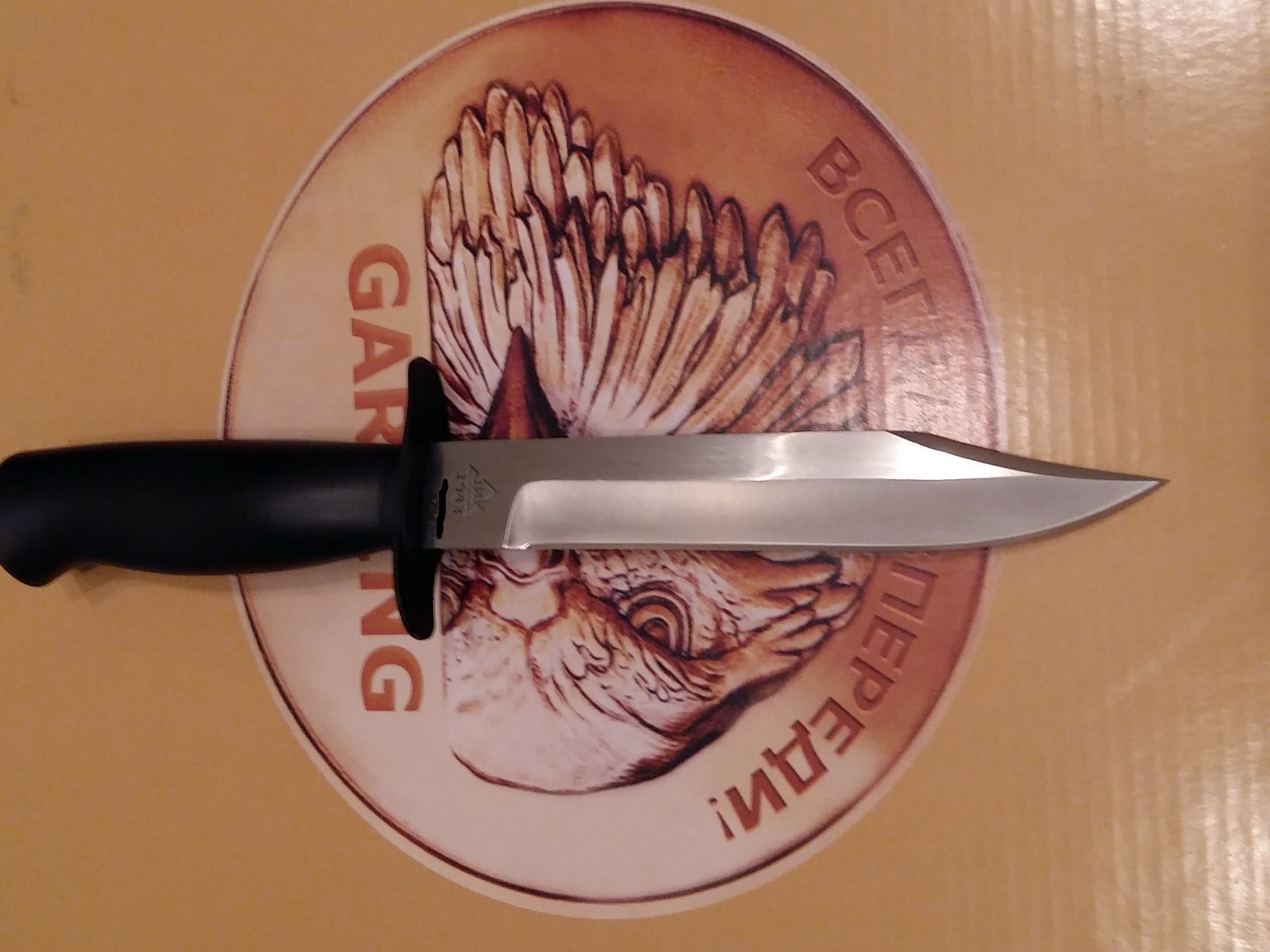 Клинок изготовлен из высоколегированной стали 40X10C2M (ЭИ 107).
