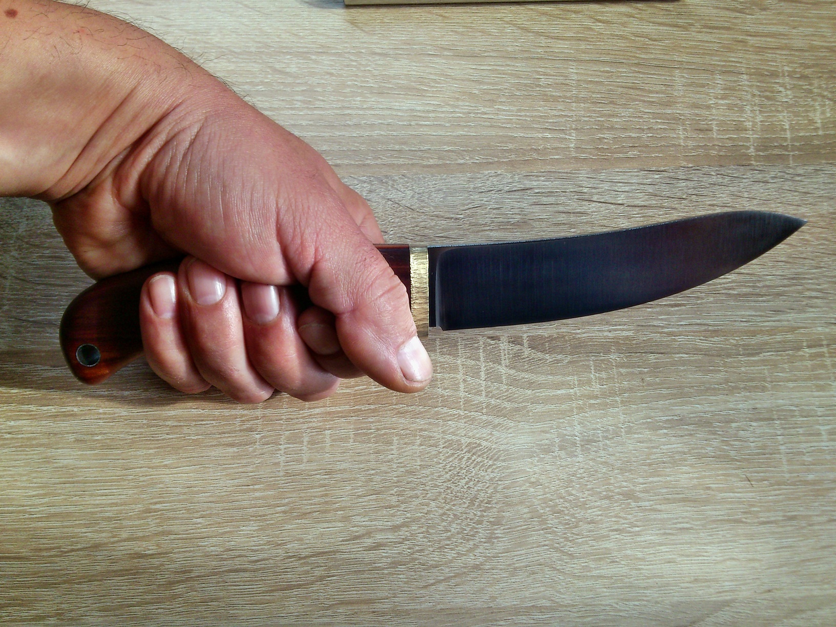 Клинок 13 см длина,3 см ширина,3.8 мм толщина,твёрдость 61,термоциклирование,2 крио,ступенчатая закалка.