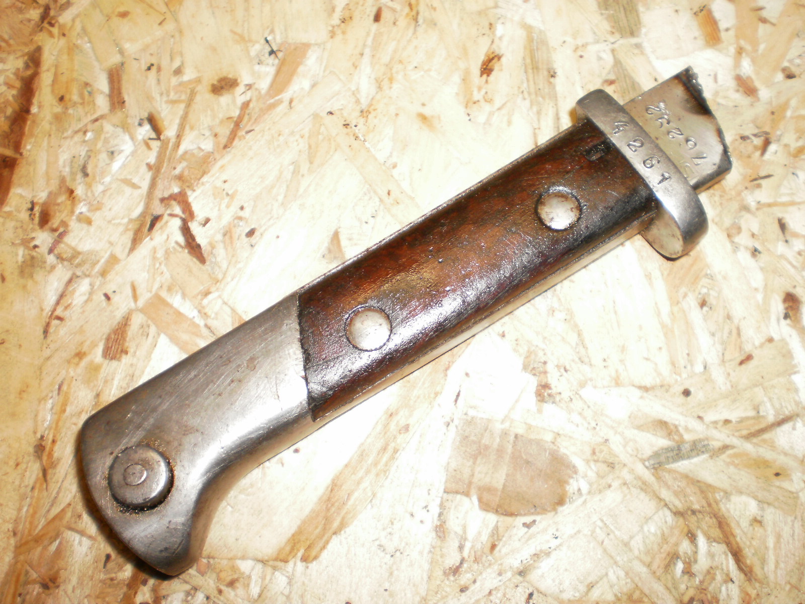Продам две рукоятки с зачатками клинка (клейма) от штык-ножей польского маузера. Радом. Образца 1924-го и 1928 годов.