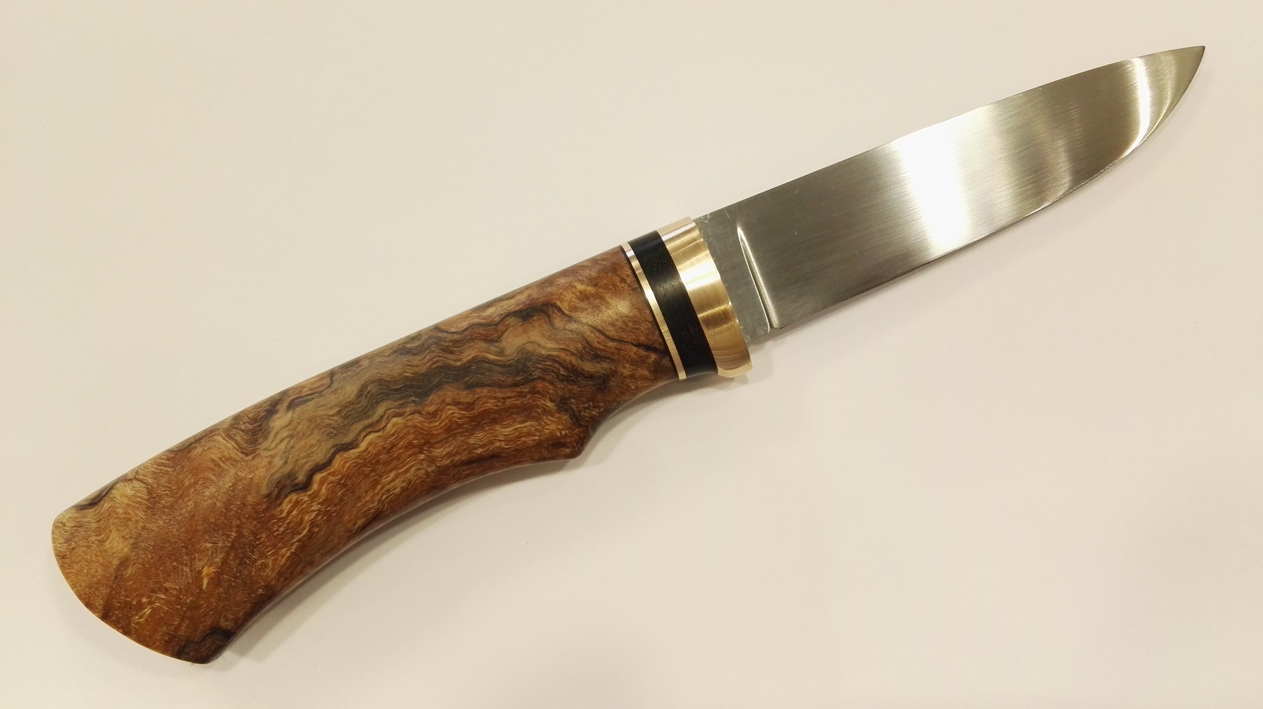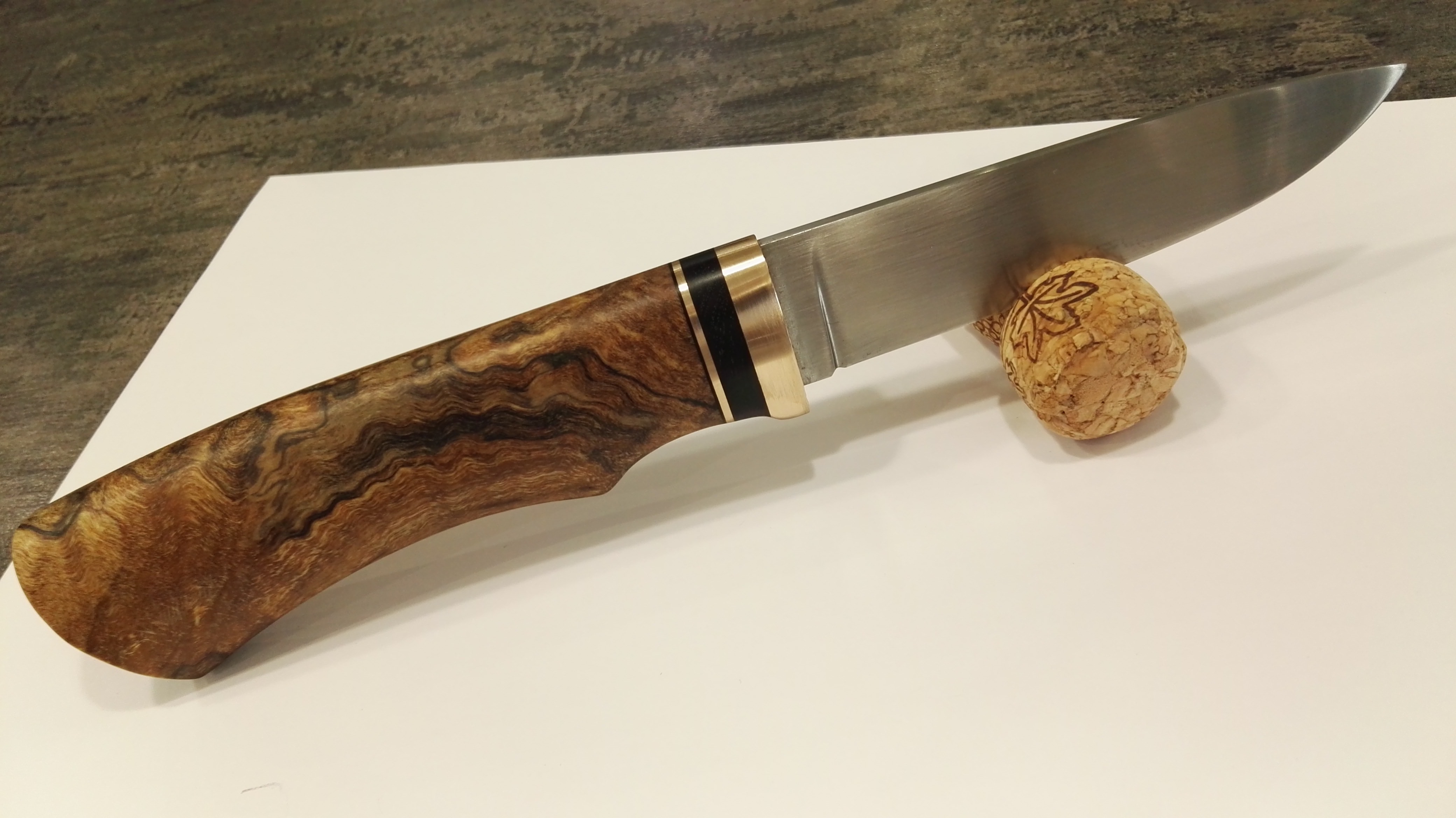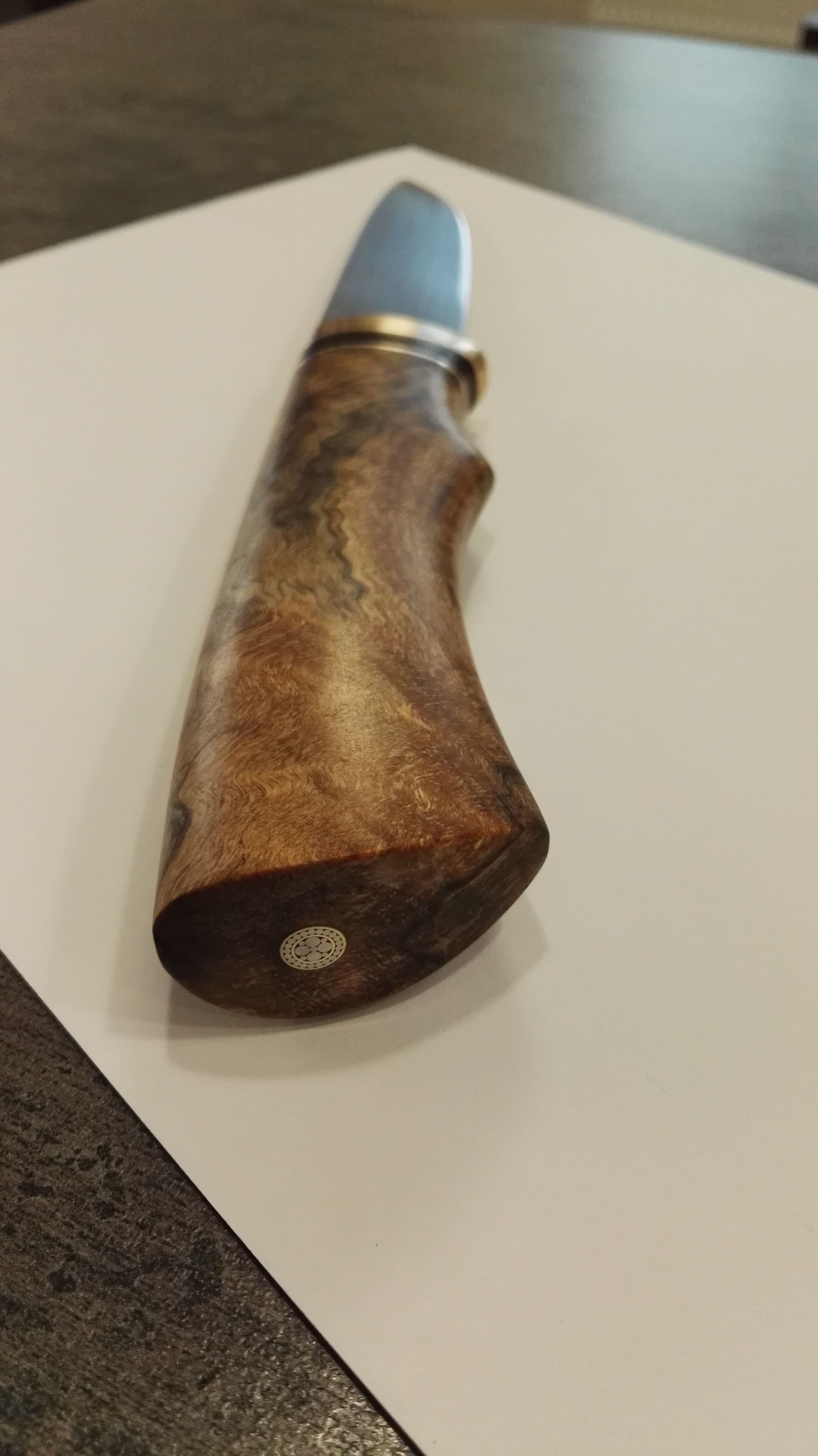 рукоять: 135мм, сувель черной ольхи стабилизированный,черный граб,бронза,вулканическая фибра, декоративный пин в торце