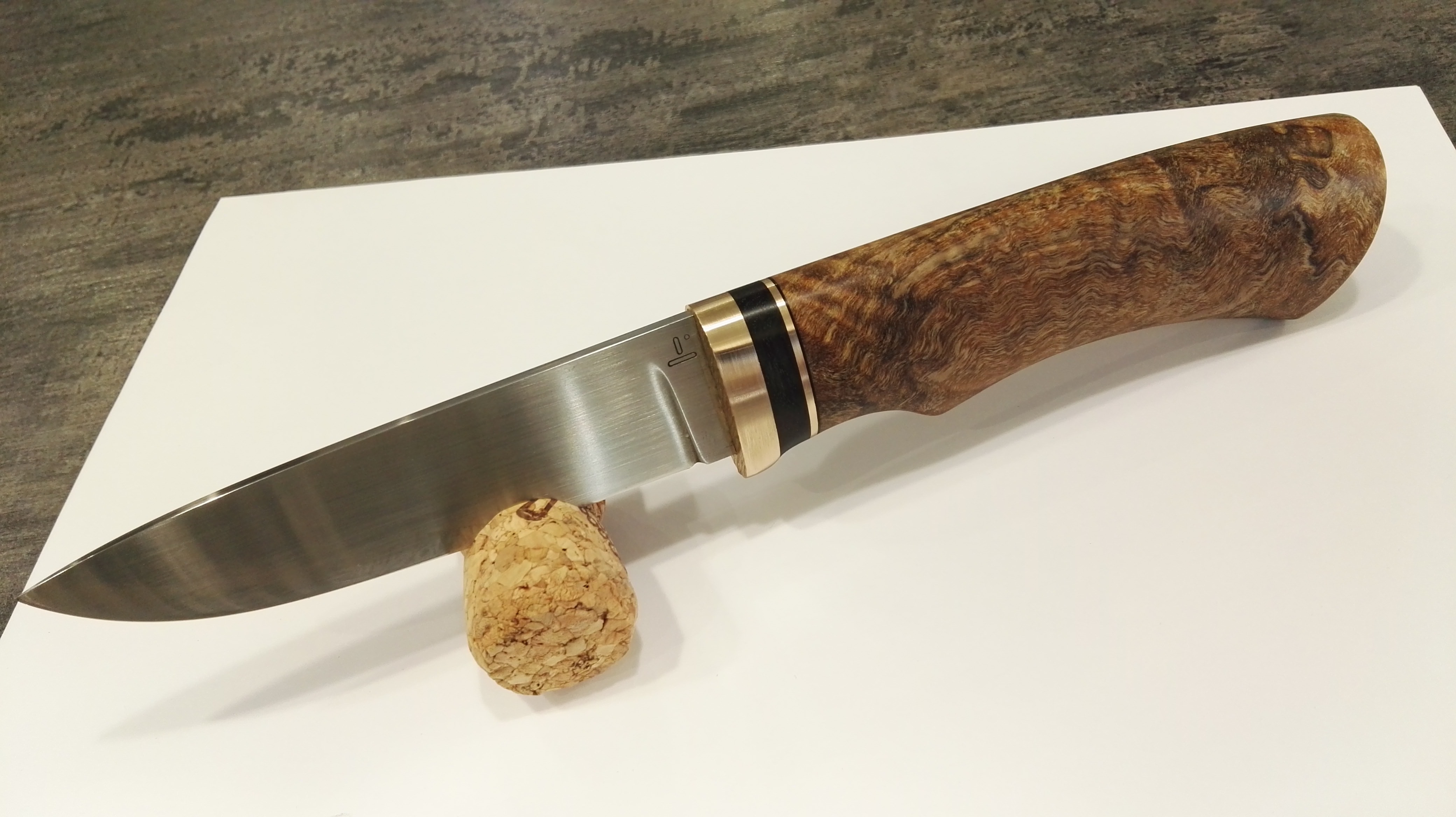 клинок: длина 110мм ширина 26мм, толщина обуха 4мм, сталь 9хс клинок мастер Чебукин (Cheda), зонная закалка, по обуху 55-56HRC, по режущей кромке 60HRC, продольный сатин,