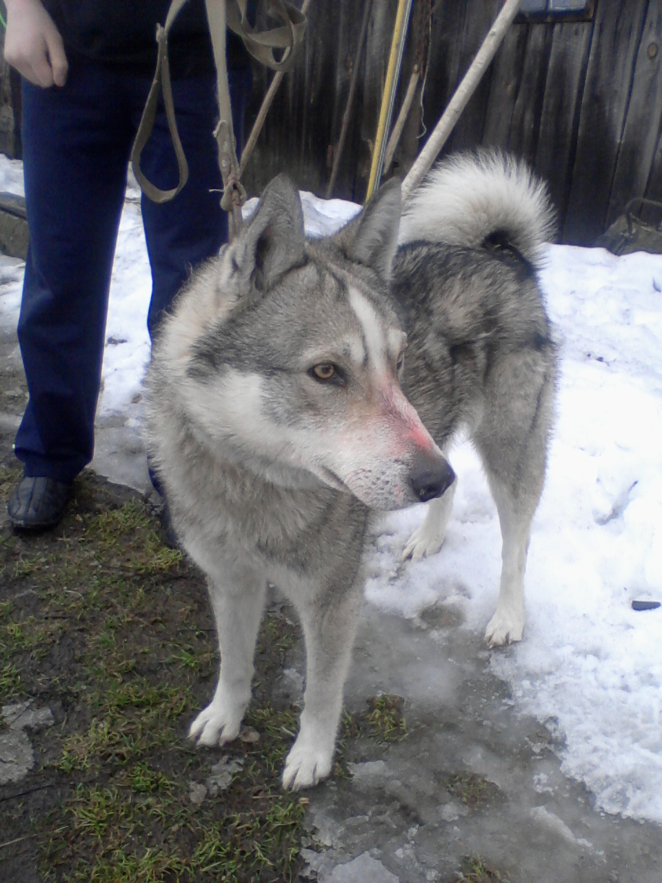 пропала лайка в раёне д. Золотуха, Луки и Навинки, восточно-европейская, возраст 4 года, масть бело-серая, завут БИМ . нашедшим пса вознаграждение милион. :-( :-( :-(