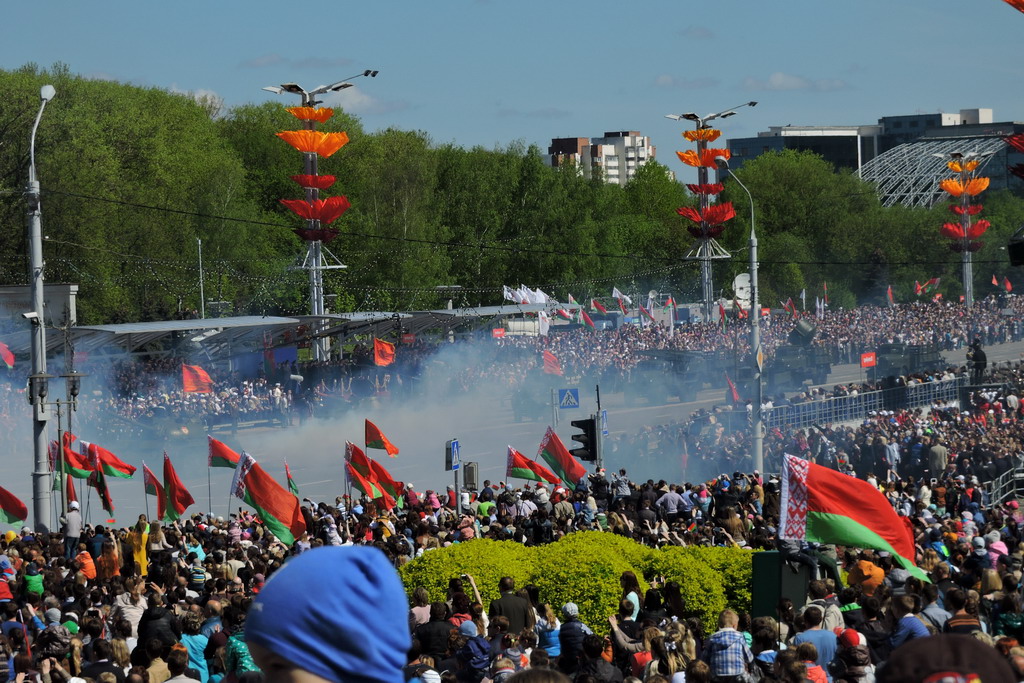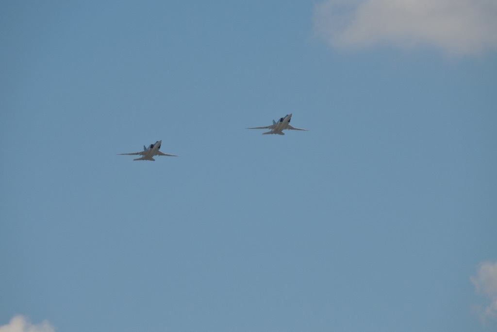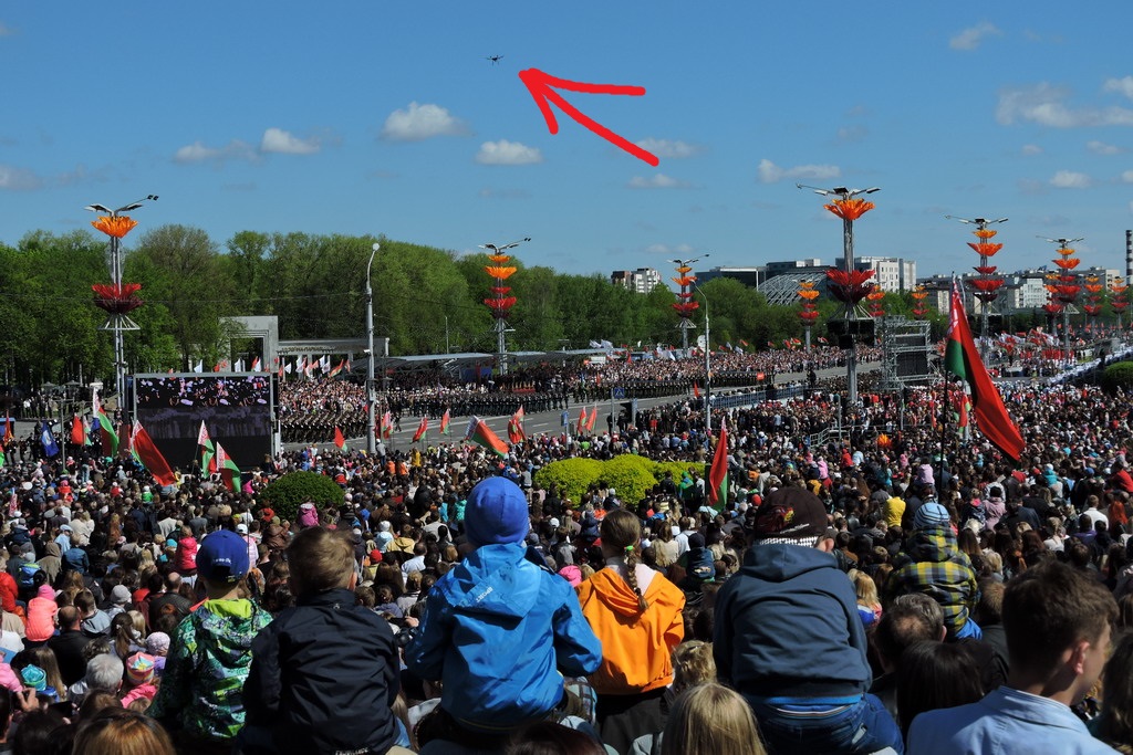 Ну и самая долгожданная и зрелищная часть - воздушный парад :co_ol: . Из того что я не видел - ЯК130 летели и Бомбардировщики ТУ 22 реактивные и ТУ 95 с пропеллерами :co_ol: когда еще в РБ такое увидиш.