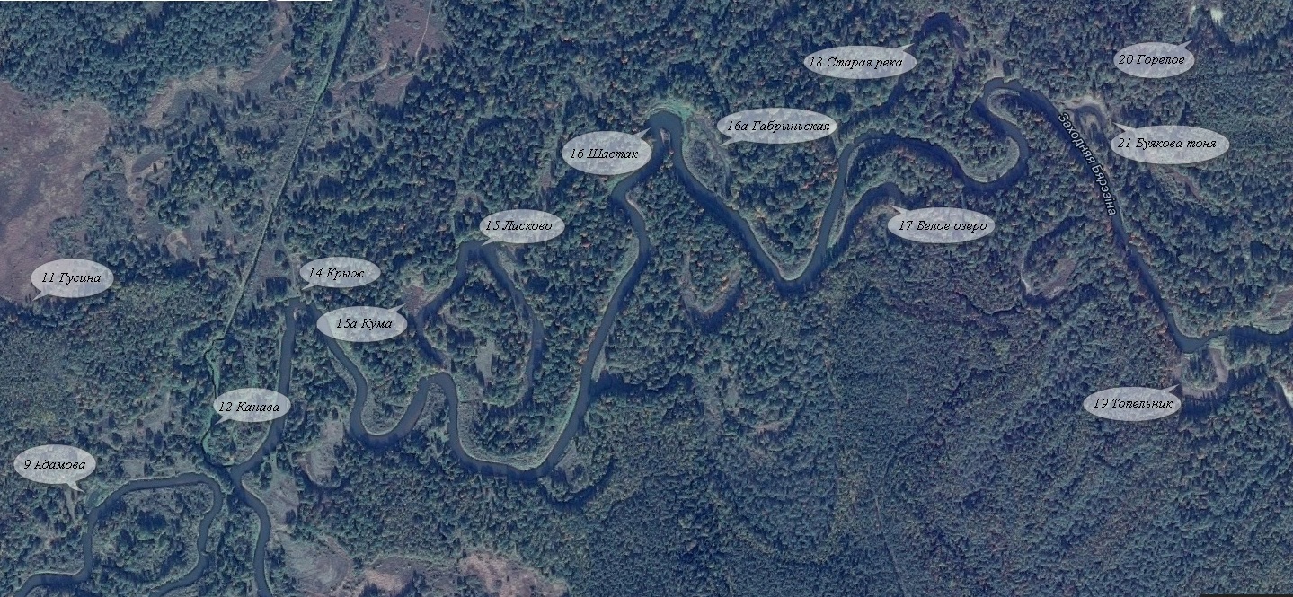 20. Заросшие лесом старицы на правом берегу назывались Горелое.
