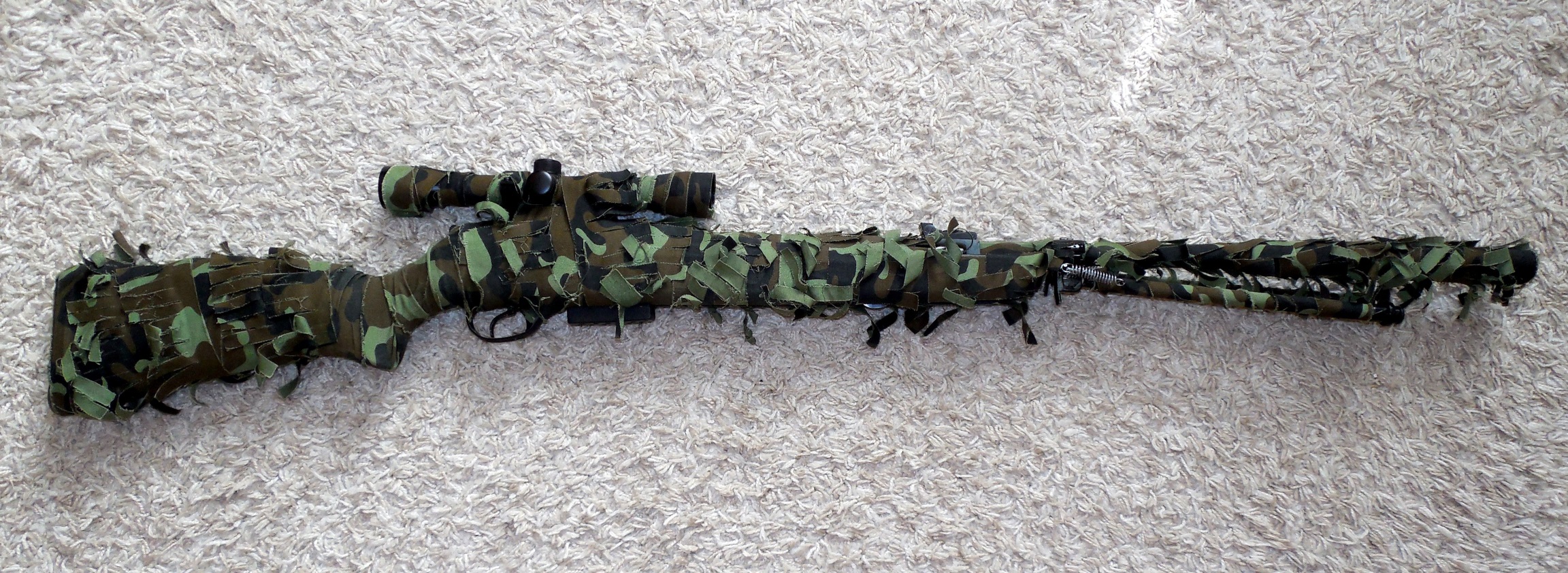 Спортивная пневматическая винтовка кал. 4,5 мм, обслужен как положено, оптика Tasco 4x24 дуплекс, кронштейн-моноблок, сошки, фальш-глушитель, камуфляжная лента, пулькодержатель, приклад залит свинцом, пружинка витая. Хорошо кушает Шмеля 0,8 г. Оптика заточена под винт - ломаться нечему.