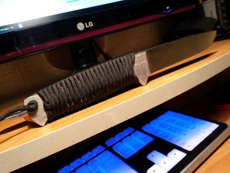Шнур на рукояти очень практичная штука. Не скользит в руке. Испачкался - перемотали новый любого цвета.