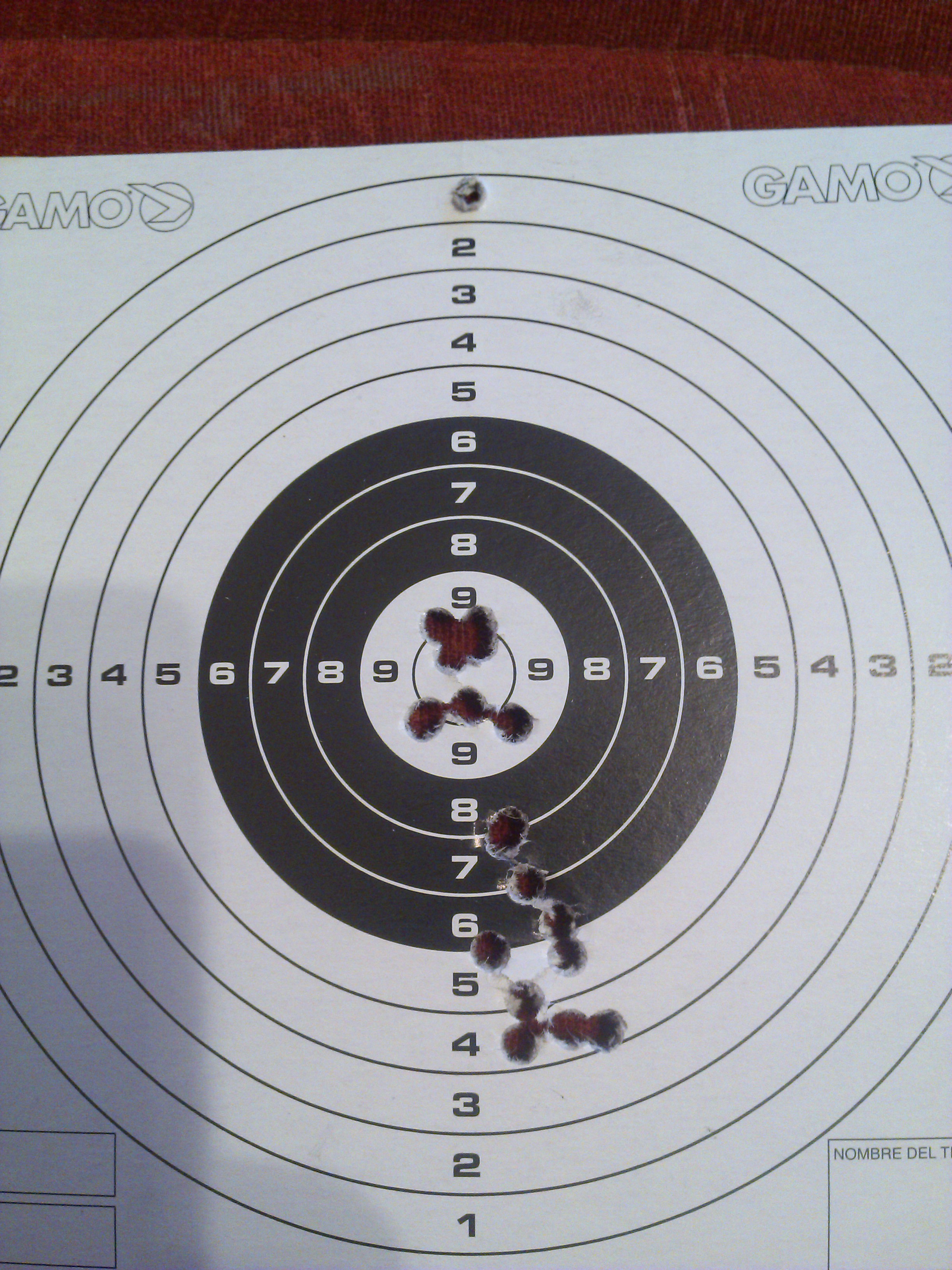Вот, кстати на 10 м из твоей. Внизу пристрелочные, верхняя 9 там 5 шт, внизу 9 тоже пристрелочеые, проверял отклик прицела на поправки. Так что думаю всё норм с кучкой будет