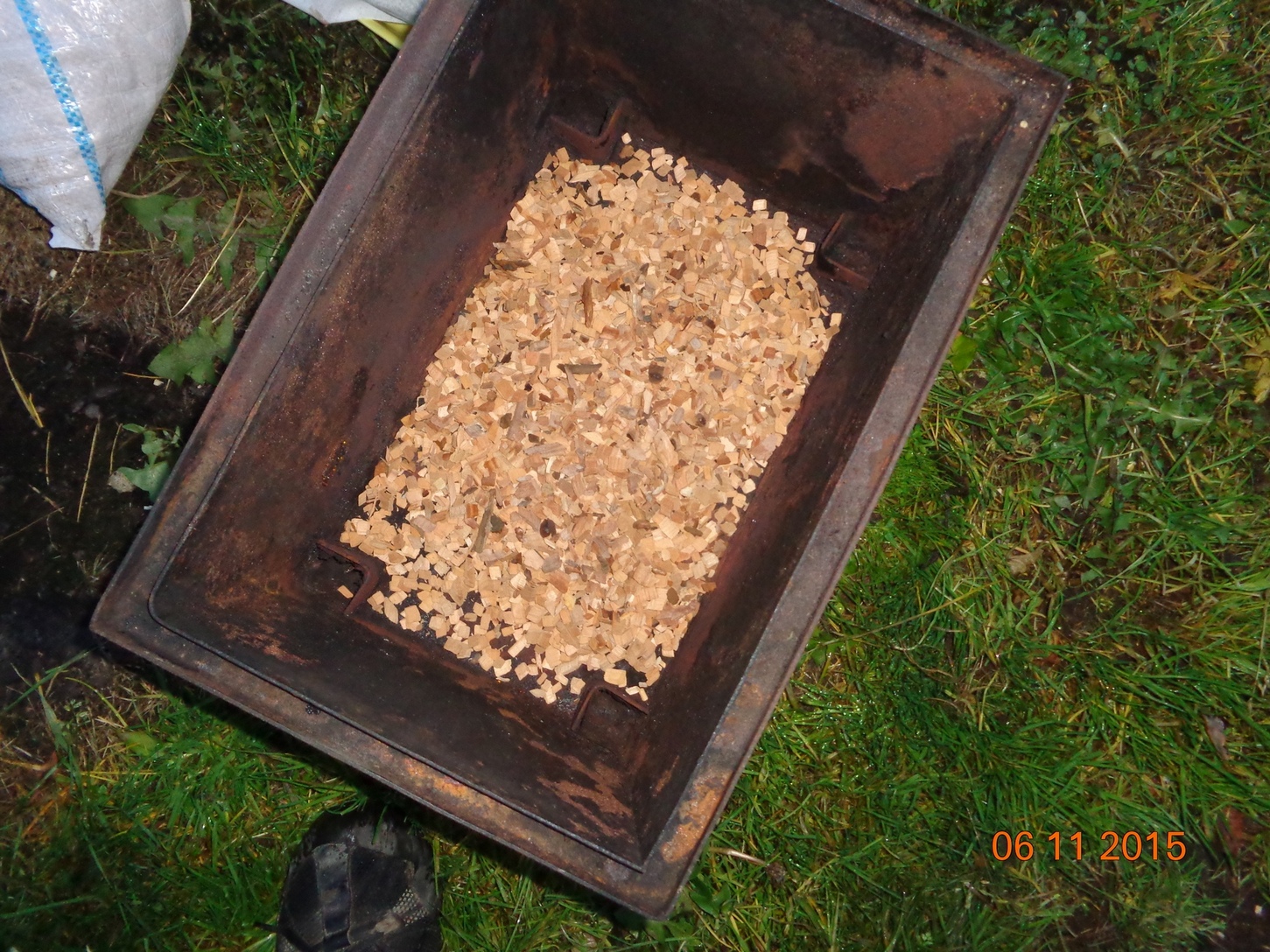 Засыпаем опилки,ставим на огонь...