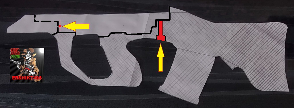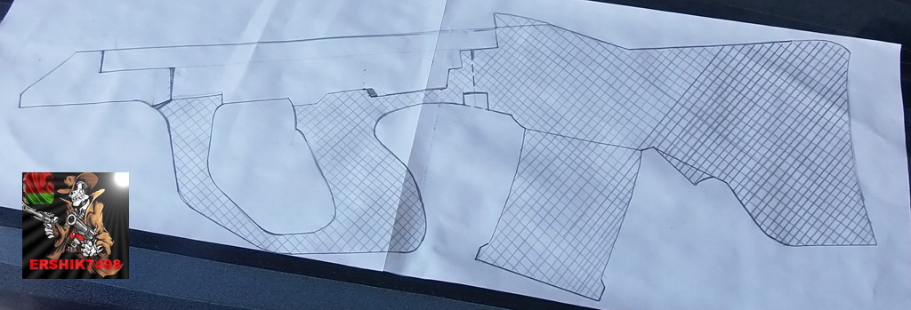 Конечно же гранатомёт не планировался.Не планировалась и верхняя база с длинной планкой Пикатини-слишком громоздкой и неуклюжей в совокупности и конфигурацией «железа» Браунинга 800(Э)получилась бы «винтовка».Ну и начал стандартно-по обрисованному «железу» сделал эскиз ложи: