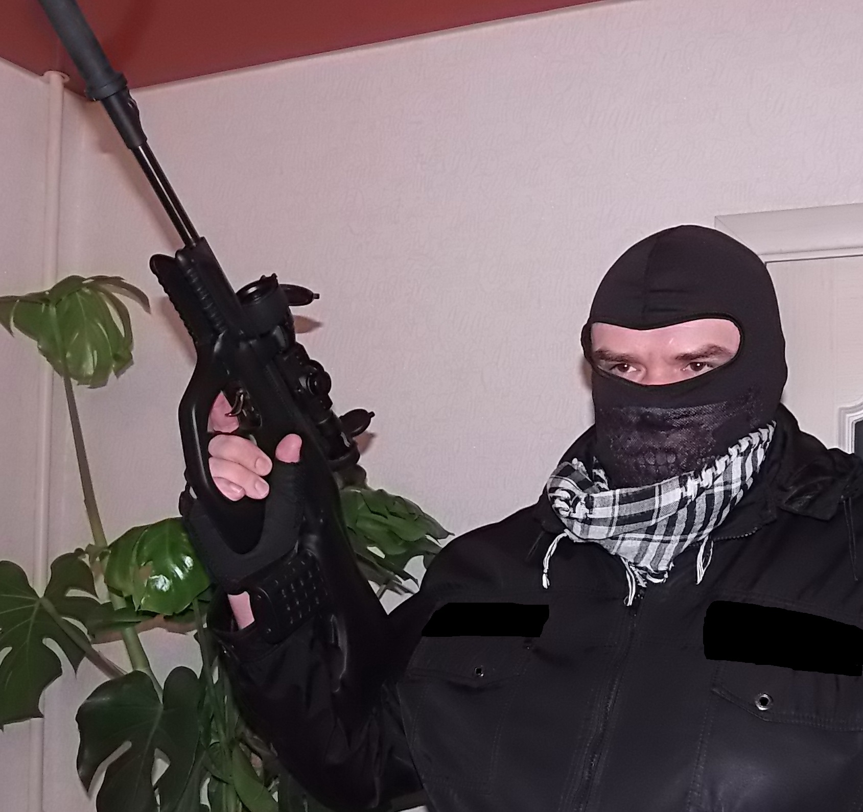 А это пенсионер решил в войну поиграть-наряжала дочка :-) Это её "фурнитура"-перчатки,балаклава,арафатка.Не хватало только разгрузки-и так спарился пока фотосессию проводили :-)
