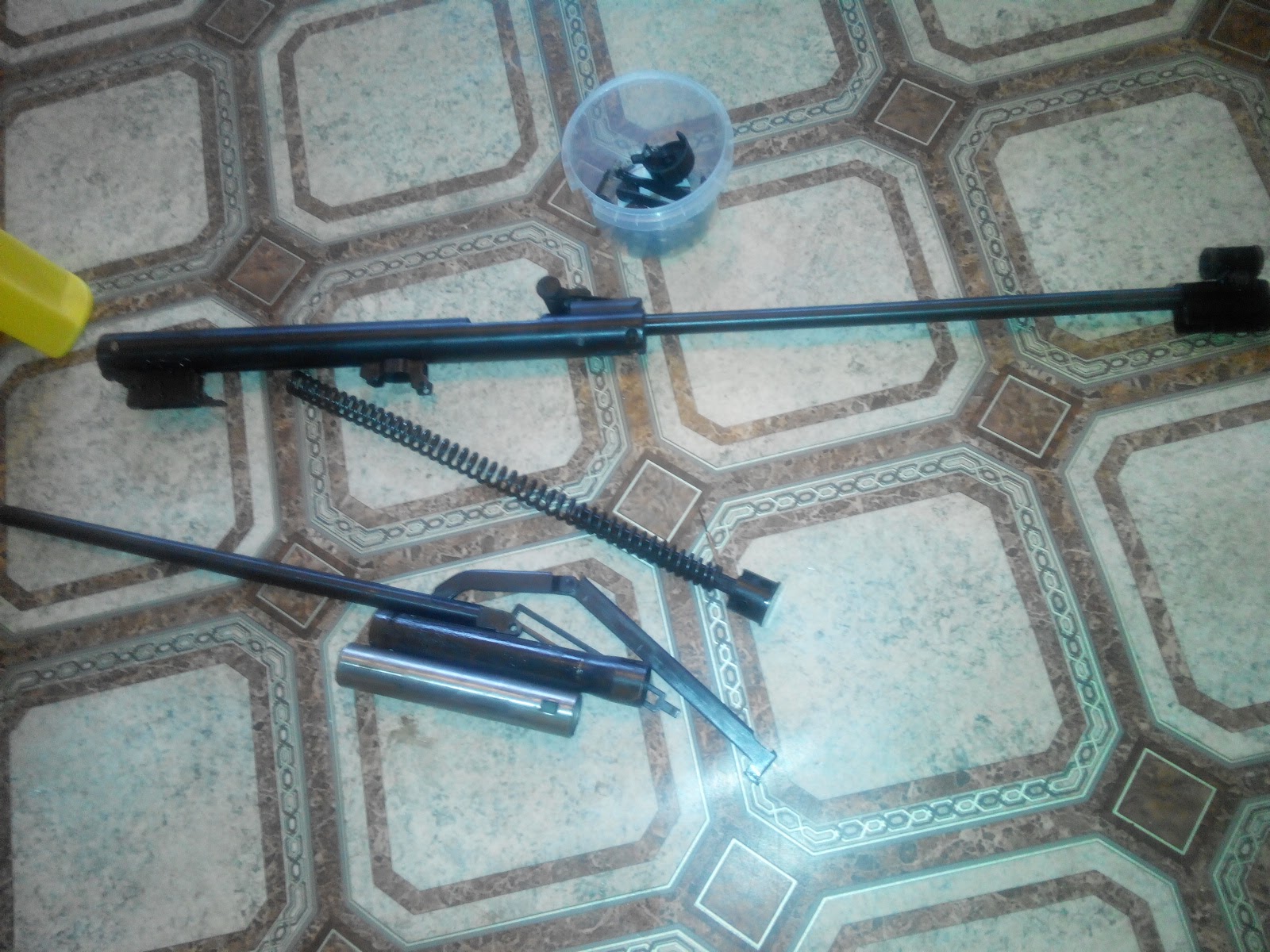 УСМ представляет собой сильно упрощённую версию гамовского, состоит из 3х деталей, не считая предохранителя и штифтов. (доработку ,схему и описание кинематики позже добавлю). Шептало набрано из калёных пластин, из щелей между которыми вытекает ржаво-красная смазка. Твёрдость на высоте, обычный надфиль его почти не берёт. Ответная деталь-спусковой крючок, состоит из 2х частей- <мягкого> корпуса крючка и <калёной> вставки, непосредственно контактирующей с шепталом. По задумке узкоглазых инженеров, она должна быть по твёрдости одинакова с шепталом- на деле всё в точности до наоборот: имеем вставку из мягкого дерьма, через тысячу выстрелов сточивщуюся до краёв очень твёрдого корпуса крючка. Китайцы, чё. Штифты меньше отверстий и выпадают сами.