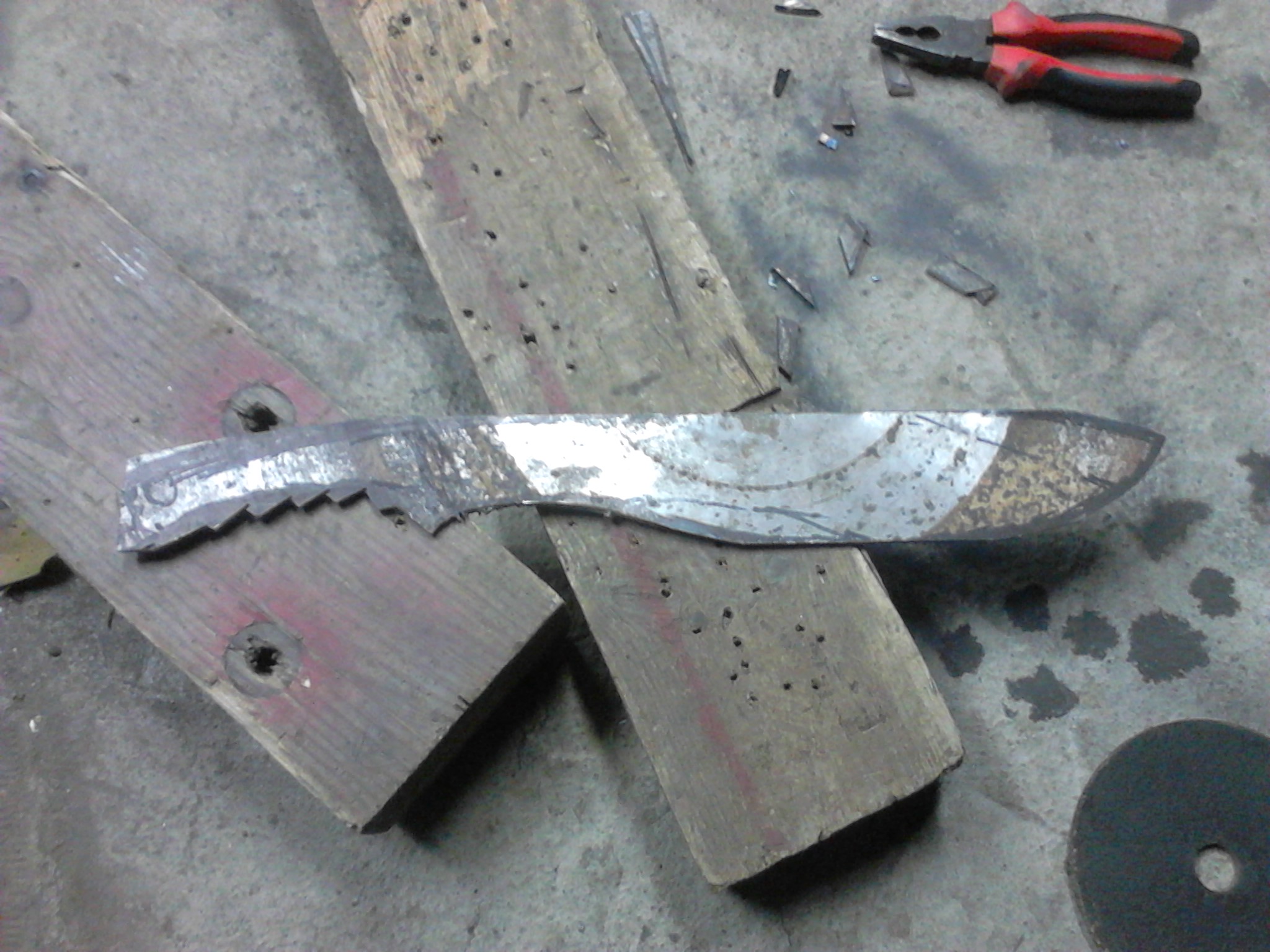 Вдоволь наигравшись покупным "игрушечным" мачете, который покупался под определенное дело - рубить хворост для подвешивания жерлиц, и начав на своем "мессершмите" упарываться в глуховатые бездорожные леса, пришел к выводу что нужно более "тяжелое" вооружение. Способное разрубать с удара - двух ветки толщиной в 8-10 см. а то и быстро одолевать колья потолще...