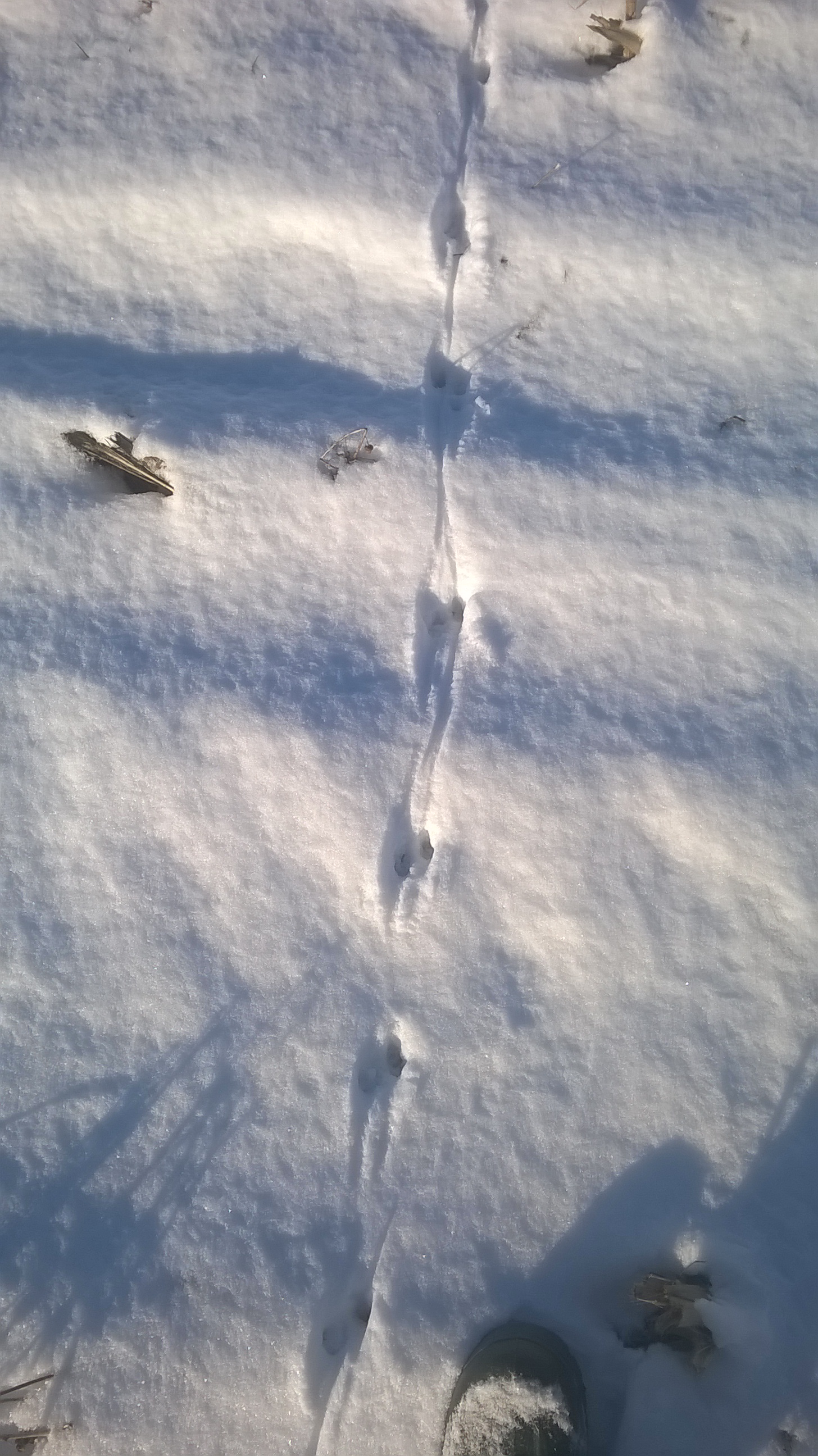 А есть какие-то соображения? На лису не очень похоже, что мало вони и гадости кругом, + поле чистое фактически, с кусами ольхи вдоль русла.