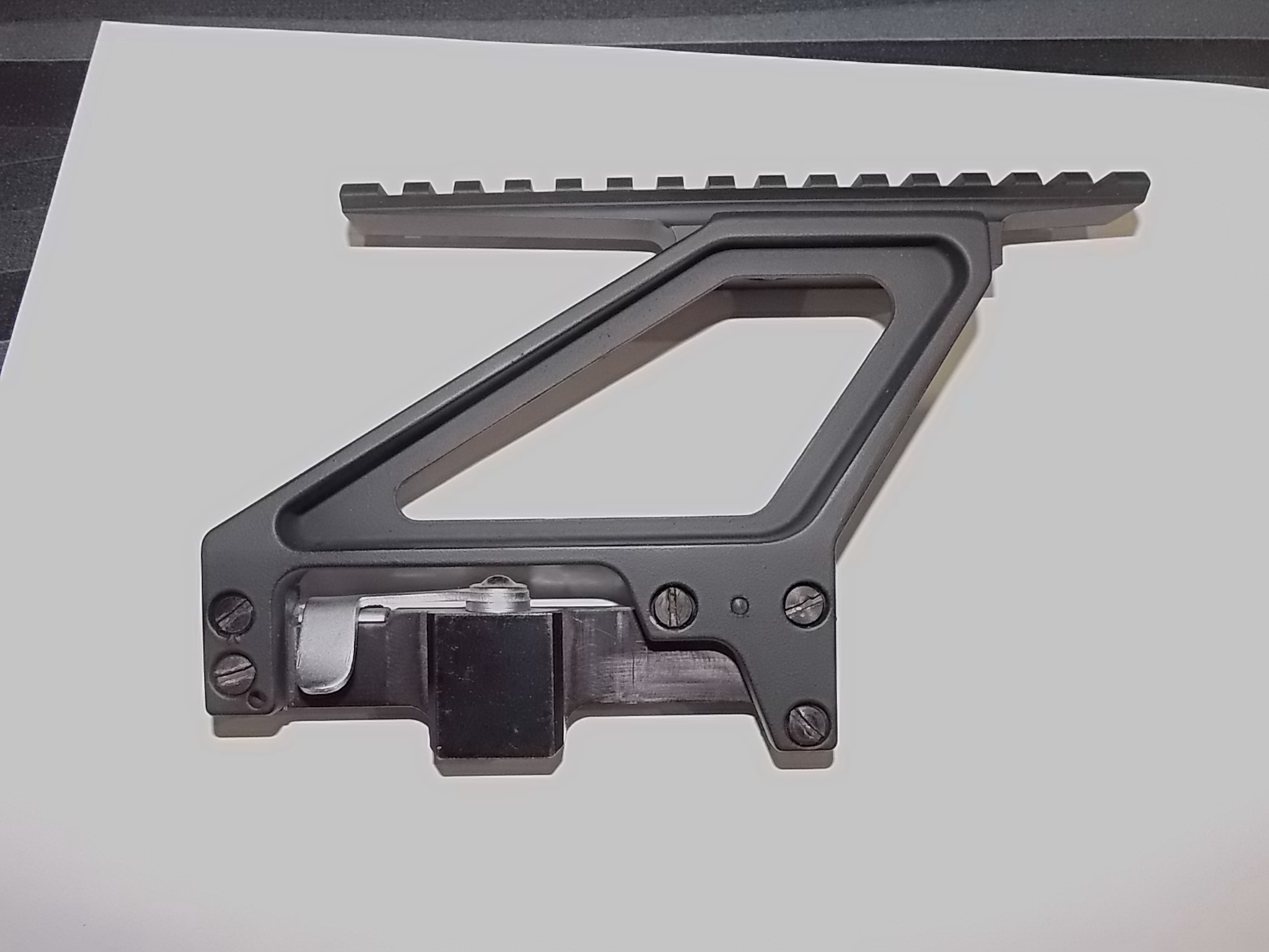 Сверху на основной базе закреплена планка "Вивер".Установить позволяет любой прицел в соответствующих кольцах/моноблоке/шине.