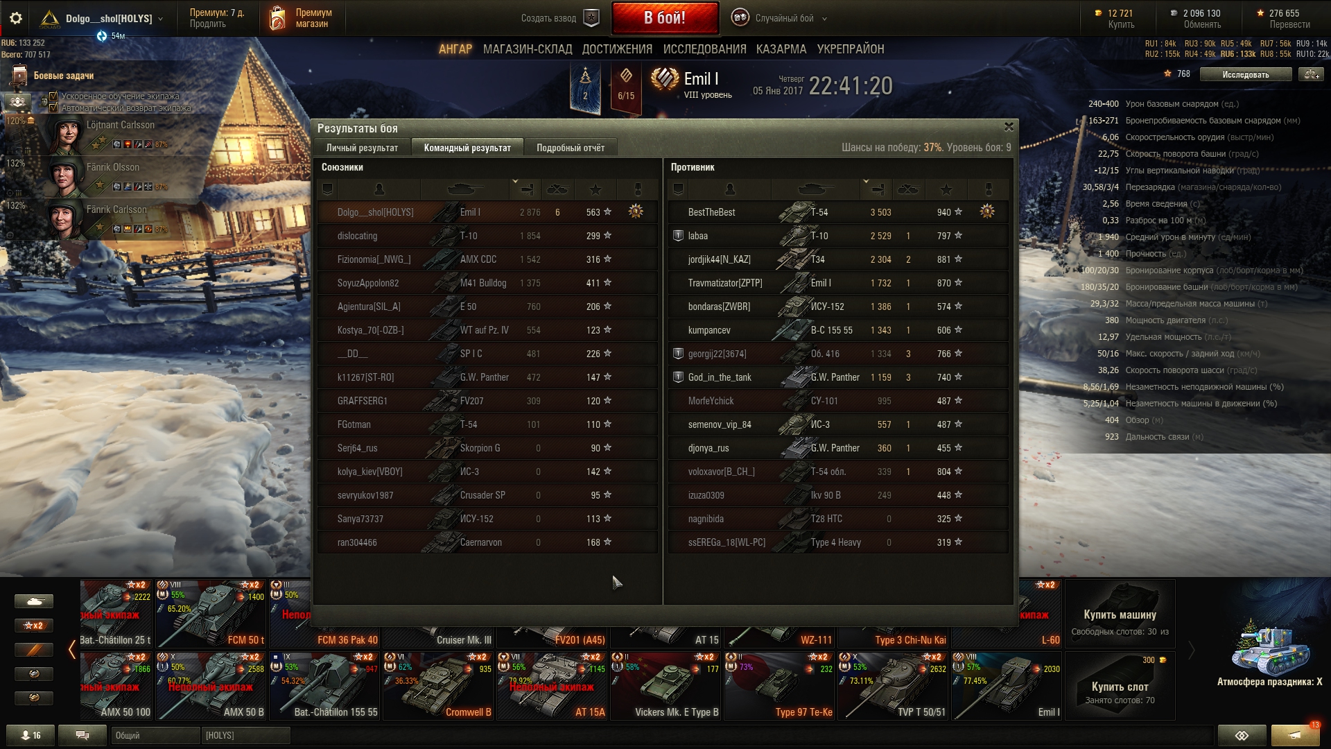 Хорошо, что Грили понерфят немного в скором времени) Уж больно они достали в рандоме. А шведы себя отлично показали, стата у них на высоте, особенно в первого Эмиля. Пока летаю в Cсылка скрыта. Для просмотра зарегистрируйтесь на форуме или войдите на форум., вот обнова дойдёт и на Е75 в рандом.