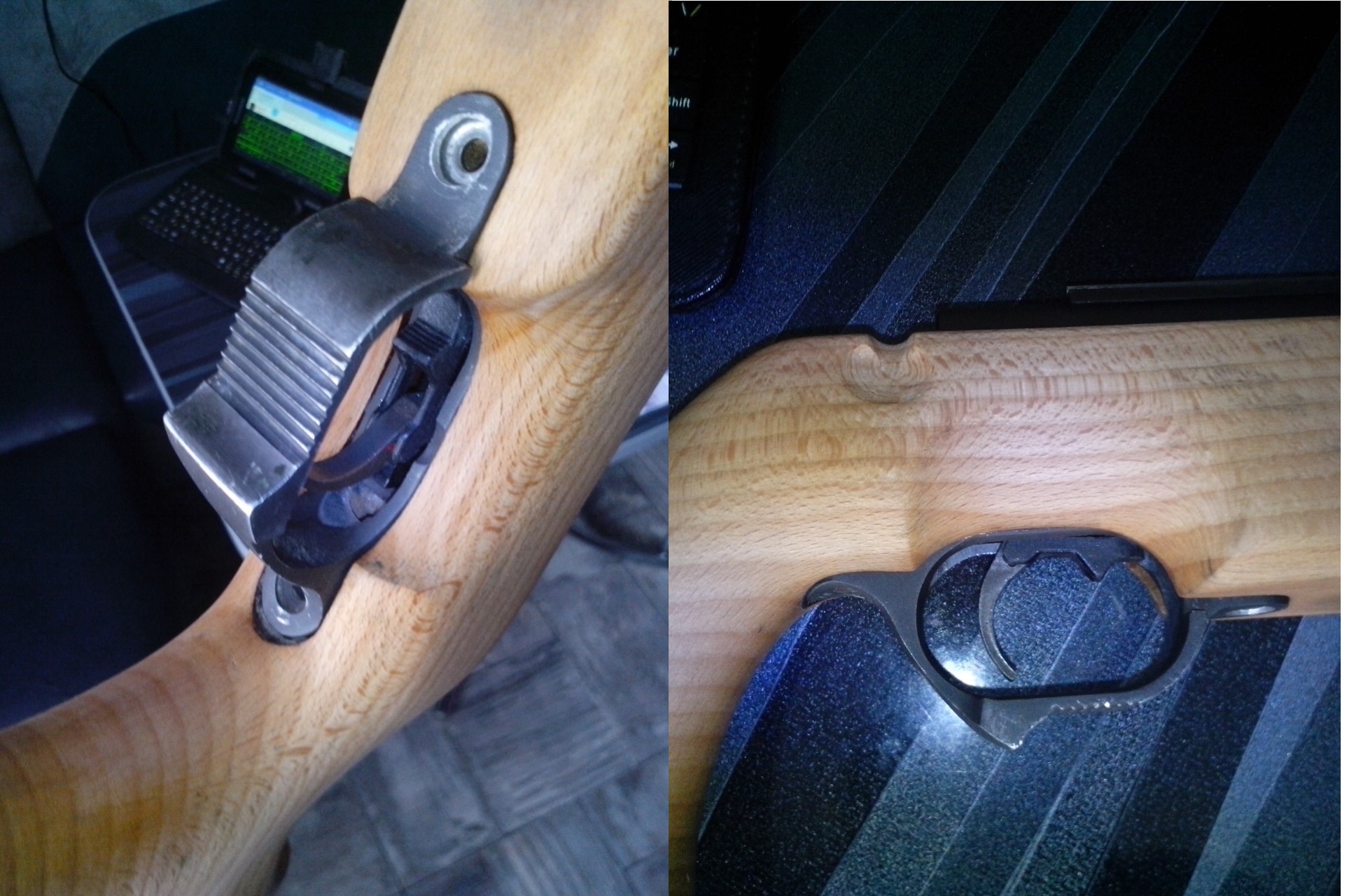 И примерно так он садился на затылок приклада.Ложу ещё нужно было шлифовать, потому запас в 1мм на подгонку приклада был как раз на руку: