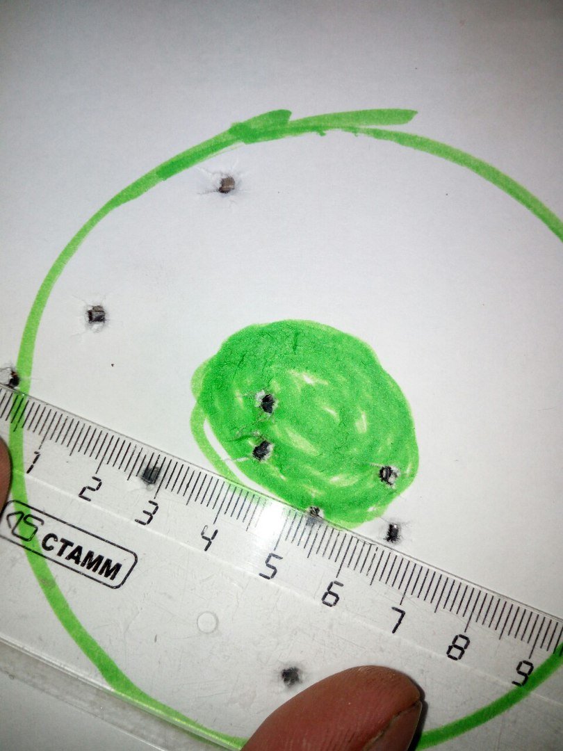 Отстрел с сошек на 113м , 6 мил, легкий ветер около 2м.c . Специально для господ любящих линейки