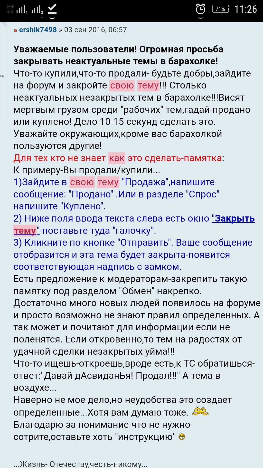 2.4 Запрещается размещать свои объявления, свои контактные данные или ссылки на свои темы в чужих темах (кроме случаев, когда идет обмен, или это явно попросил автор темы).